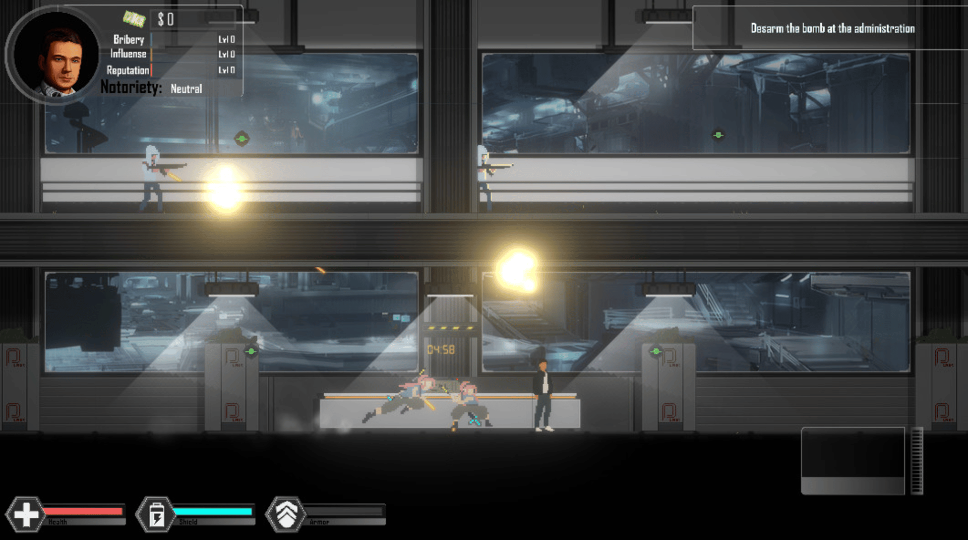 Escape Planet 17 is a 2D action cyberpunk platform game where you can Interact with other characters to create unique paths. Use your fighting, shooting, hacking and scanning abilities to solve crimes, defeat your enemies and escape the Planet.
