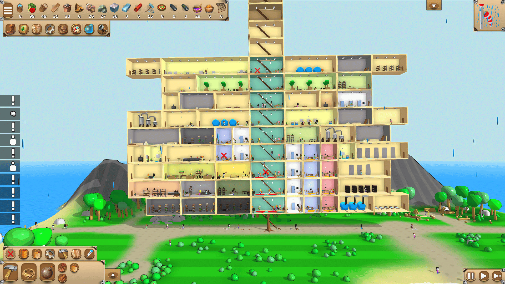 Through an "accident" seafarers arrive on an island where they have to fight for their survival. Help them by building and managing a tree house for them.