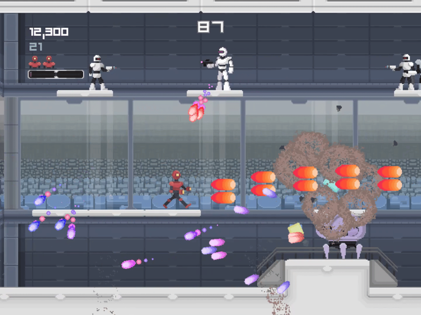 Redpulse is a run 'n gun game inspired by bullet hell shooters that encourages speedy and aggressive gameplay.