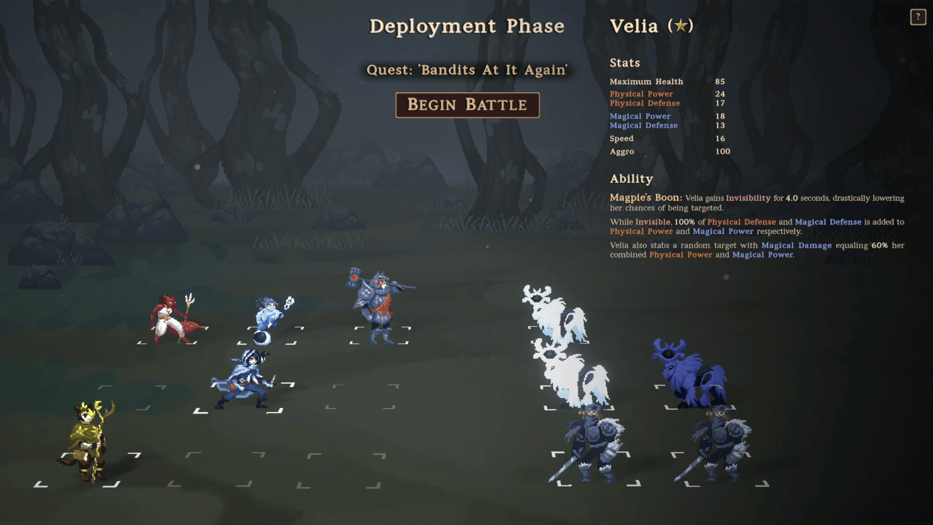 Kilta is a single-player auto battler strategy RPG featuring item management, an interesting story supported by a growing cast of unique characters, charming pixel art in a 2.5D environment, and a stunning soundtrack.