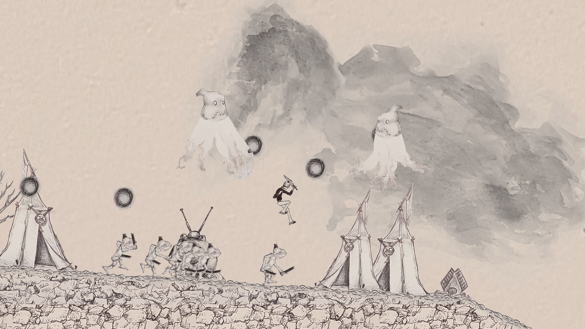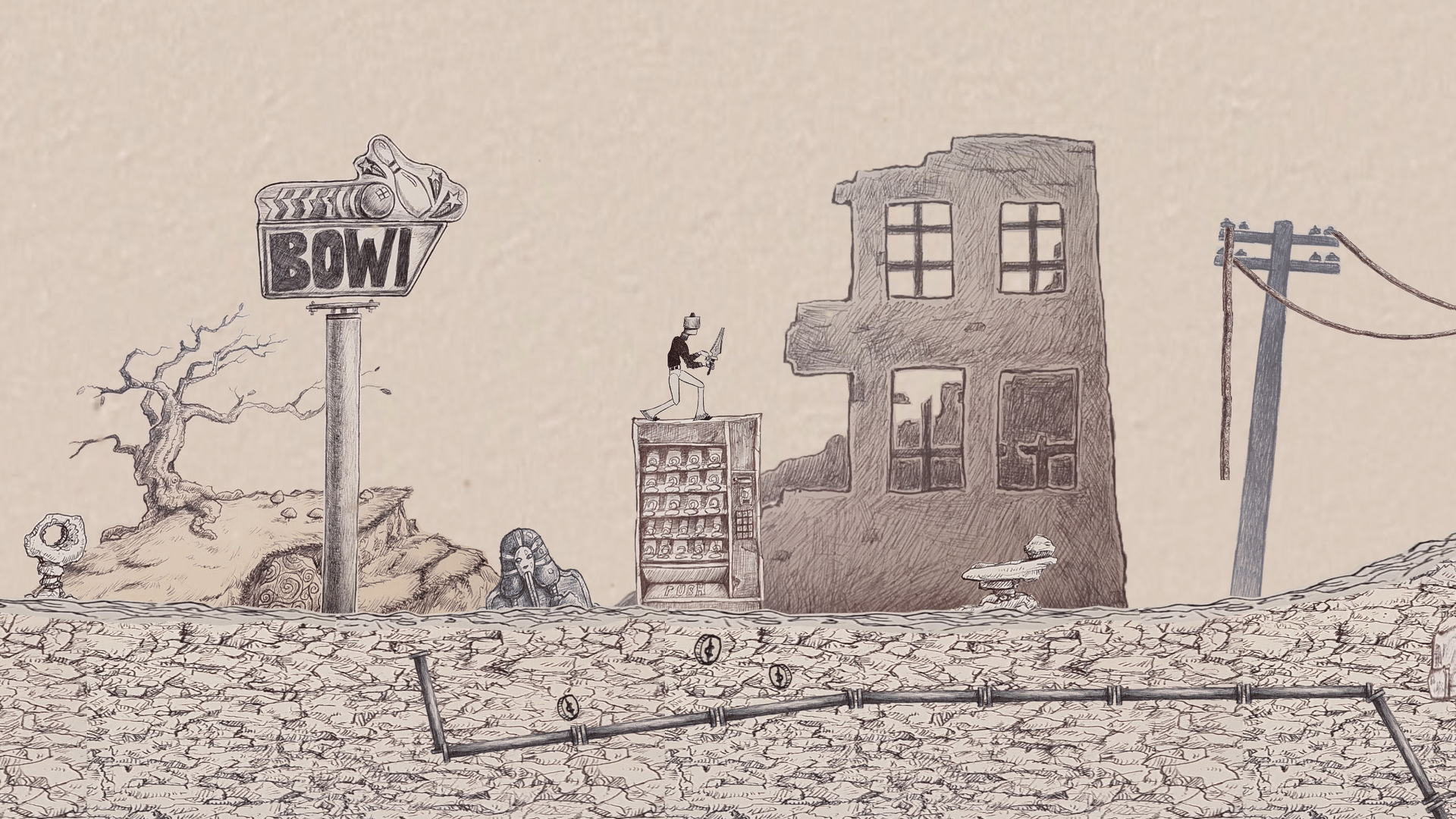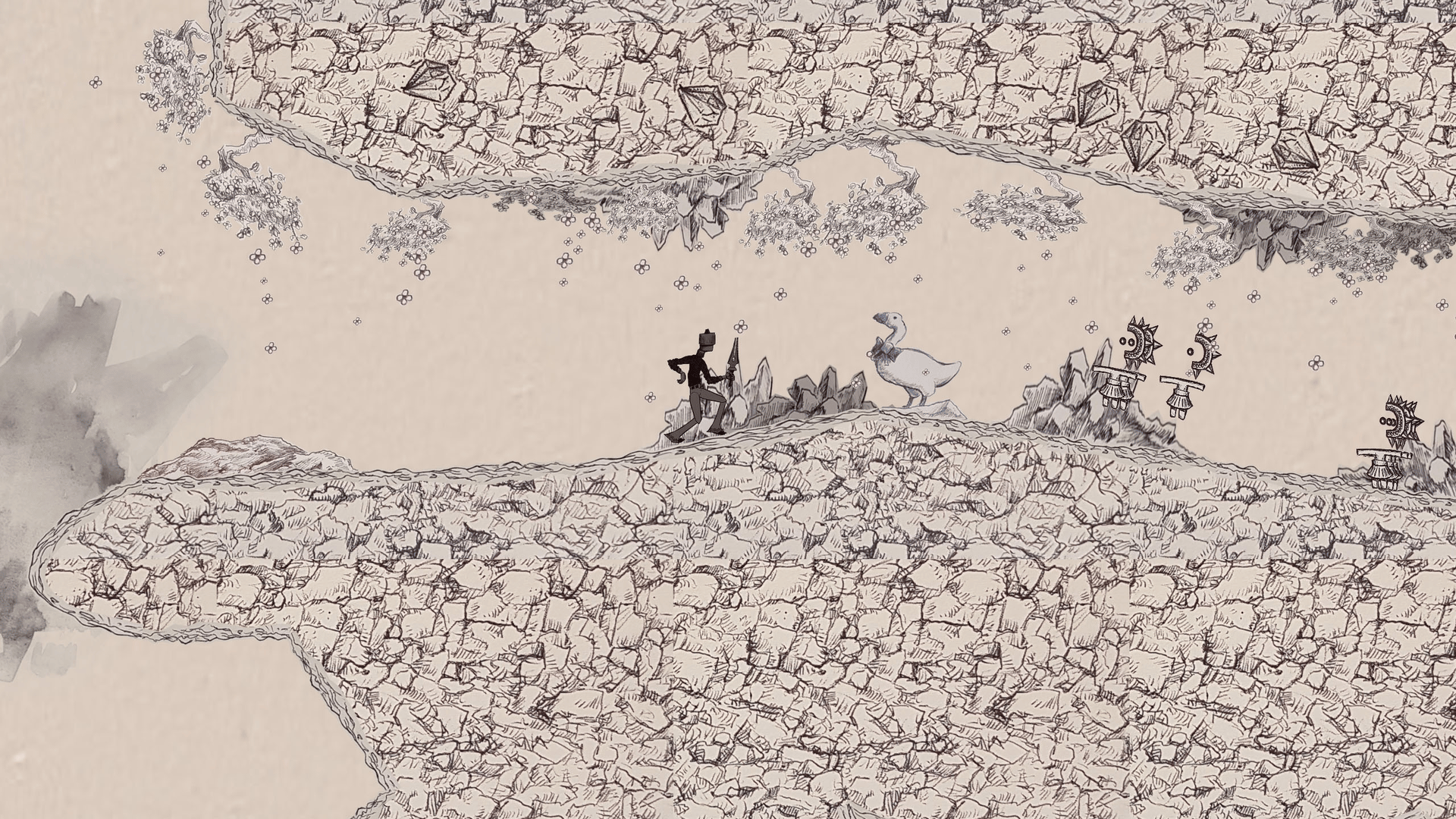 A side-scrolling action platformer made with all ink on paper assets. Explore a post-apocalyptic setting of mutated fauna and collapsing ruins with strange critters.