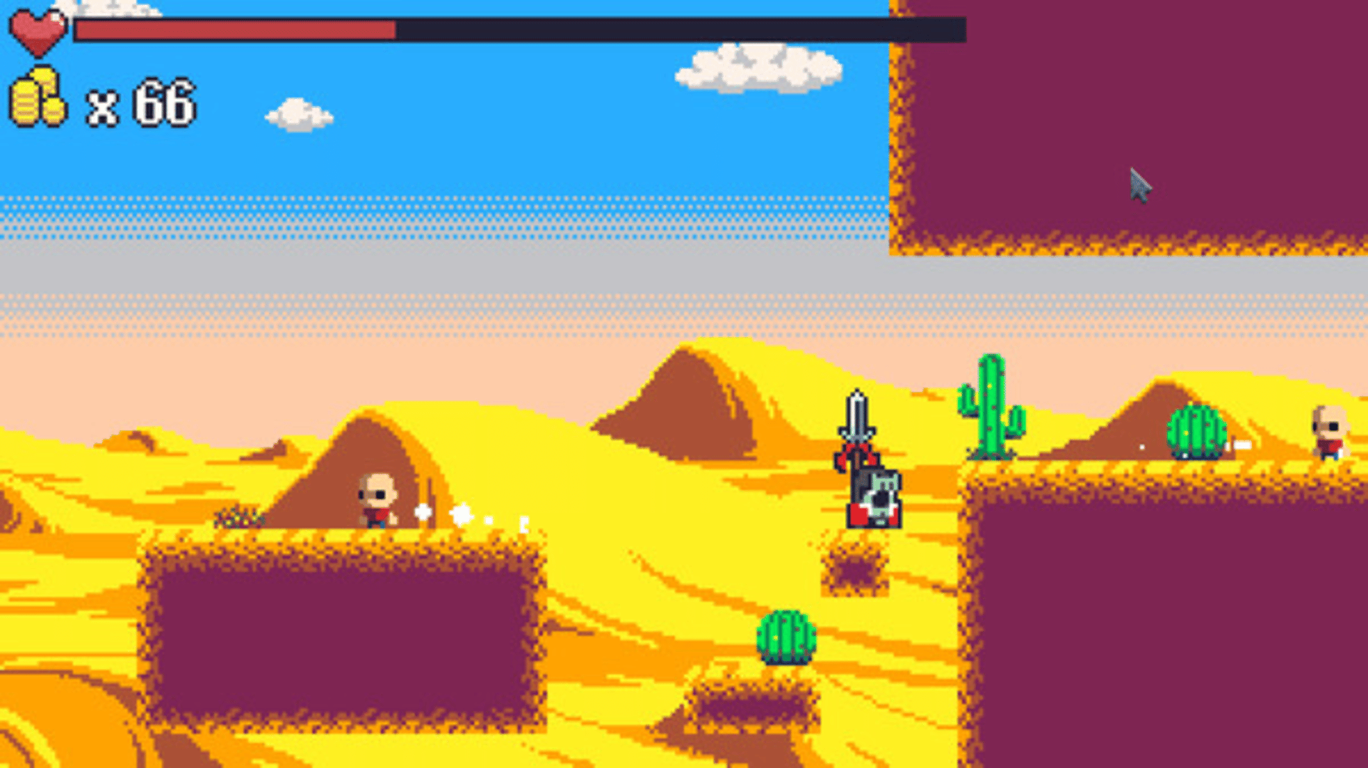 "Arthur's Revenge" is a 2d platformer game about a king who wants to take revenge on his enemies and get his Kingdom back. Hit your enemies with your spear, collect coins and buy upgrades with them, visit various levels and caches to defeat all the enemies.