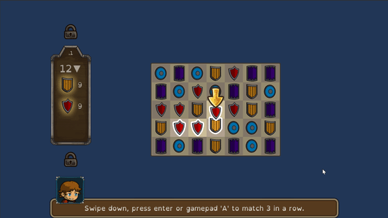 This is a fantasy-themed match 3 / jigsaw puzzle mashup. Players that like match 3 blast games, may enjoy a different take on match 3. You are not just collecting, but also trying to solve for a pretty pattern. It has input accessibility and difficulty settings which can make the experience not just accessible, but quite therapeutic (the easiest setting). This game can be played with keyboard only, or game-pad only (2 button mode supported), or of course with touch or mouse. Breaking up the levels is a story about Bruce and his lackluster adventures. It also has a built-in traditional match 3 level designer and a non-random one.