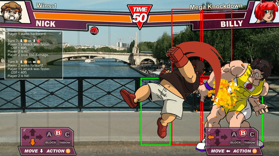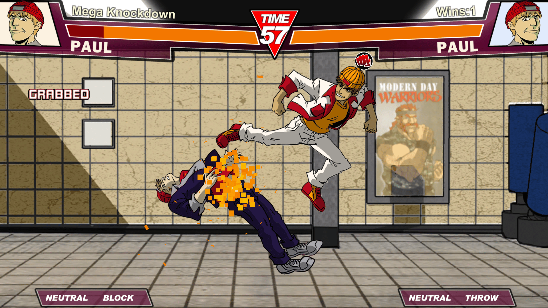 Mega Knockdown is a simultaneous turn-based 2D fighting game which emulates fundamental fighting game concepts such as oki, spacing and pressure. No execution required.