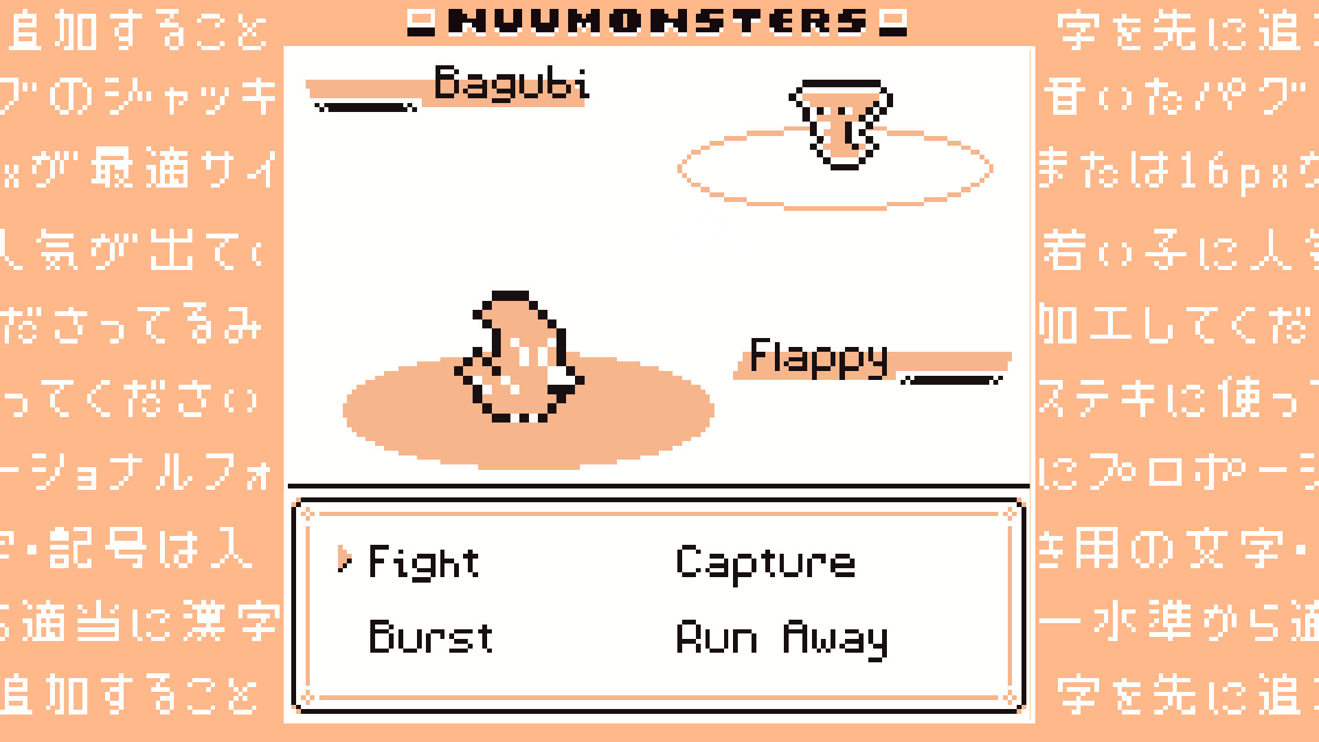 Nuumonsters is a game set in the future about curious little creatures that strive to be the strongest! Power on your AR Gear and play the role of Yasaka or Yana who strives to be the highest ranking Nuumonster trainer on the global leaderboards. Do so by defeating powerful opponents in Nuumonster battles, unlocking secret training dojo's, and attending underground battling casinos.