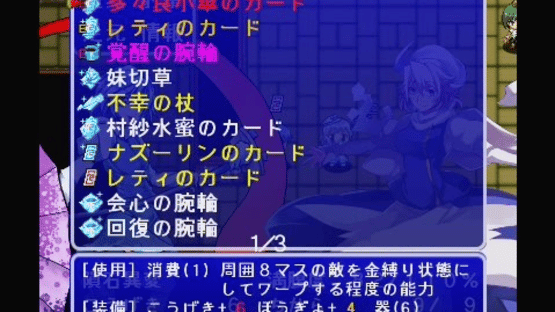 The Indie game in the long running Fushigi no Dungeon RPG series. Fushigi no Dungeon RPG series is roguelike, and "Fushigi no Daibouken: Cirno Kenzan!" is Toho Project's fan game.