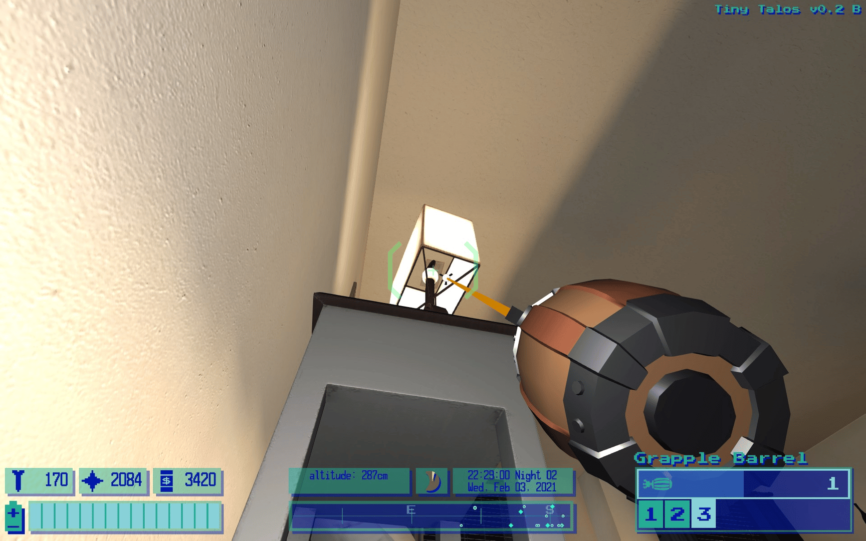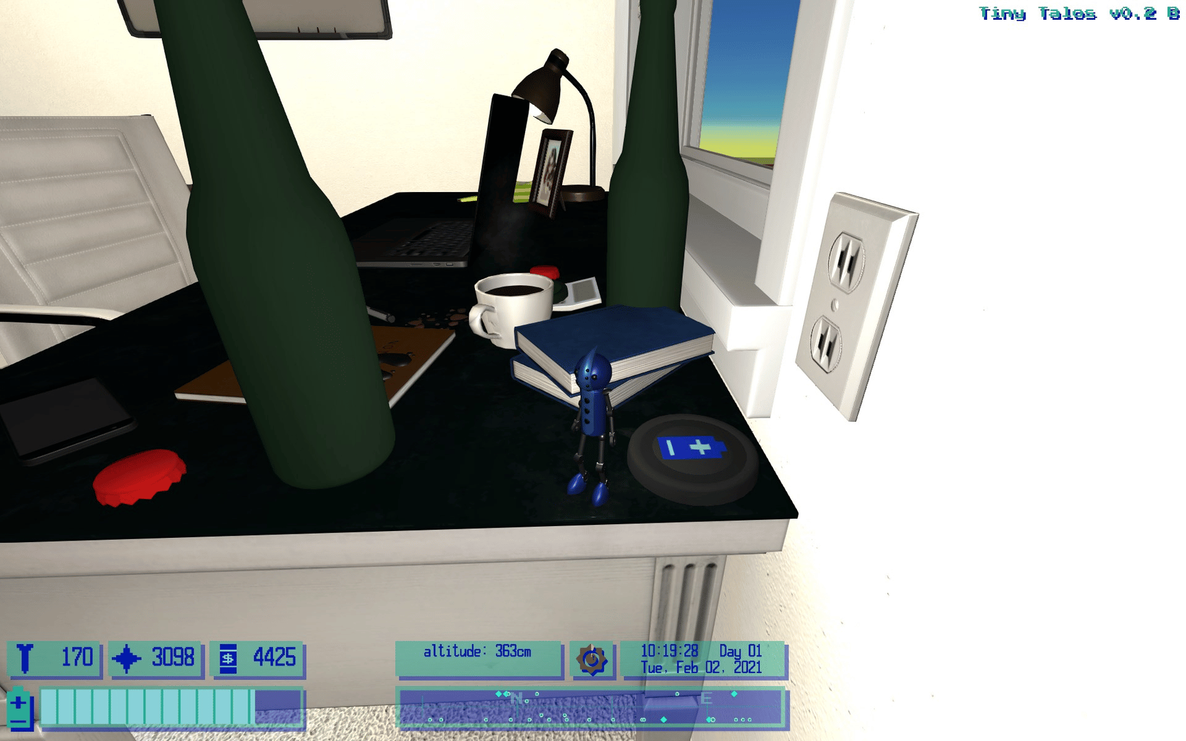 Tiny Talos is the exploration-focused adventure of Talos, a miniature robot with an aptitude for cleaning. The player can climb, fly, or jet through a large house, discovering its secrets along the way.