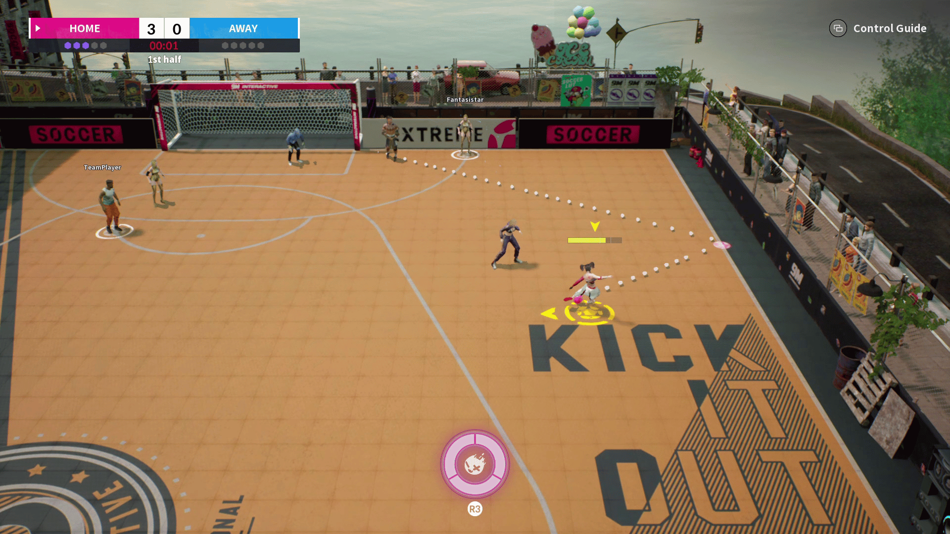 Enjoy a 3 VS 3 street football game with players all around the world!