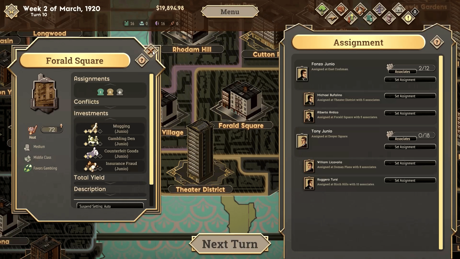 The Commission 1920 is a turn-based strategy game set in the roaring 1920s where you play as a Don of a mafia family. The goal is to manage your resources and exert your influence on the city to remove competing powers using violence, politics, and careful investment of illegal rackets. The Commission 1920 is a re-imagining of the original The Commission game.