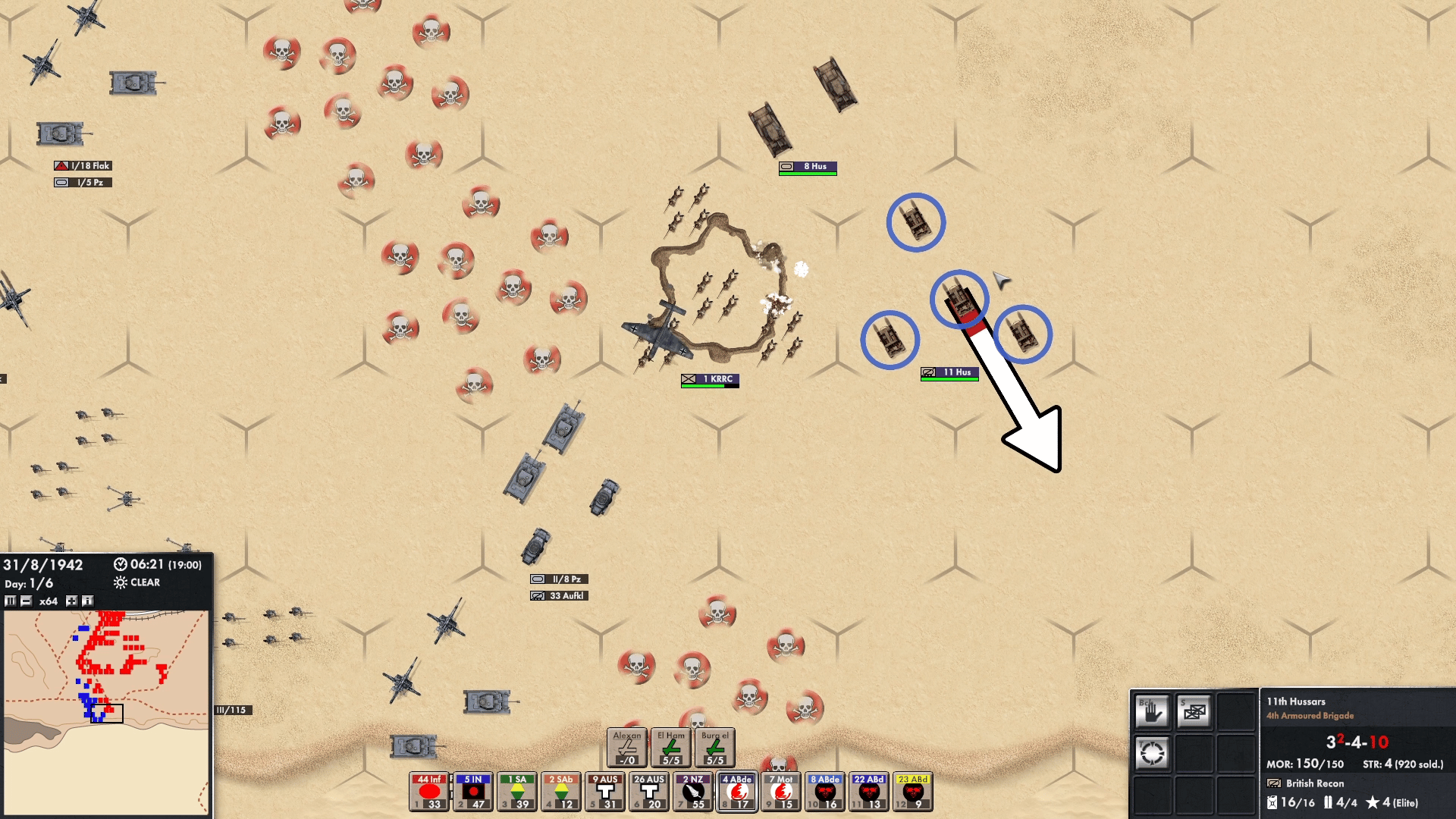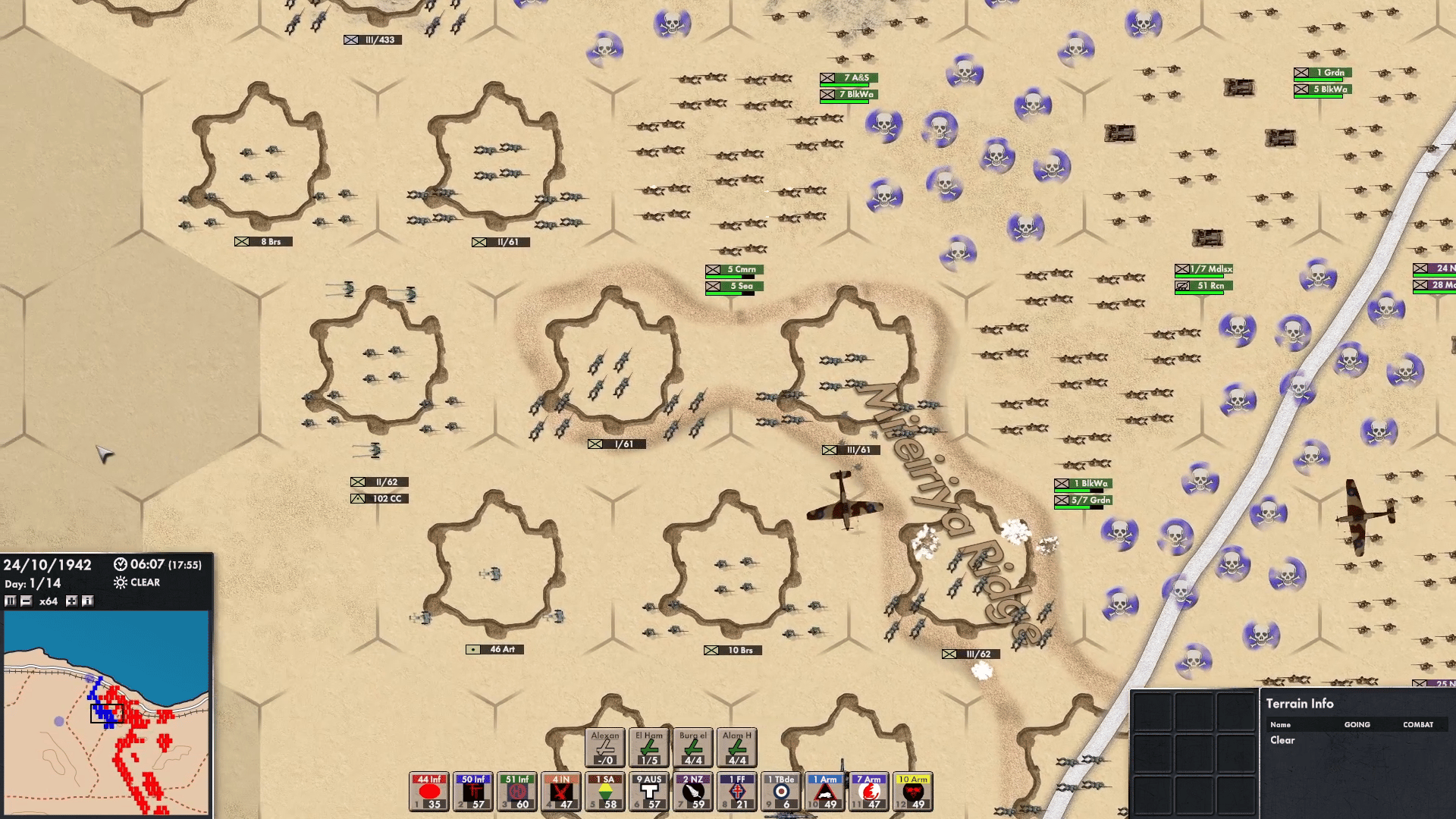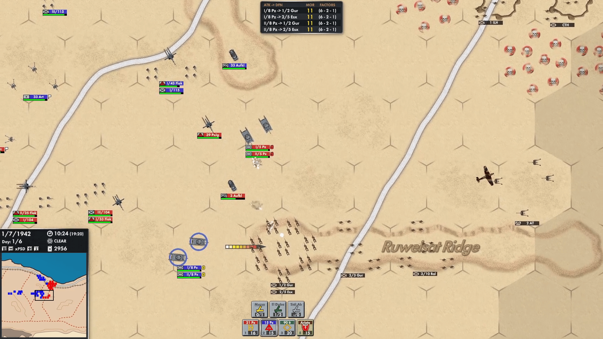 Attack at Dawn: North Africa is an operational level wargame set in WW2 North African theatre. It features 3 campaigns, and 15 scenarios, which can be played in solo or multiplayer modes. It begins with the German troops probing into the Libyan region of Cyrenaica, and finishes either with the total defeat of German-Italian Panzer Armee, or with the British loss of Egypt and their retreat across the Suez Canal.