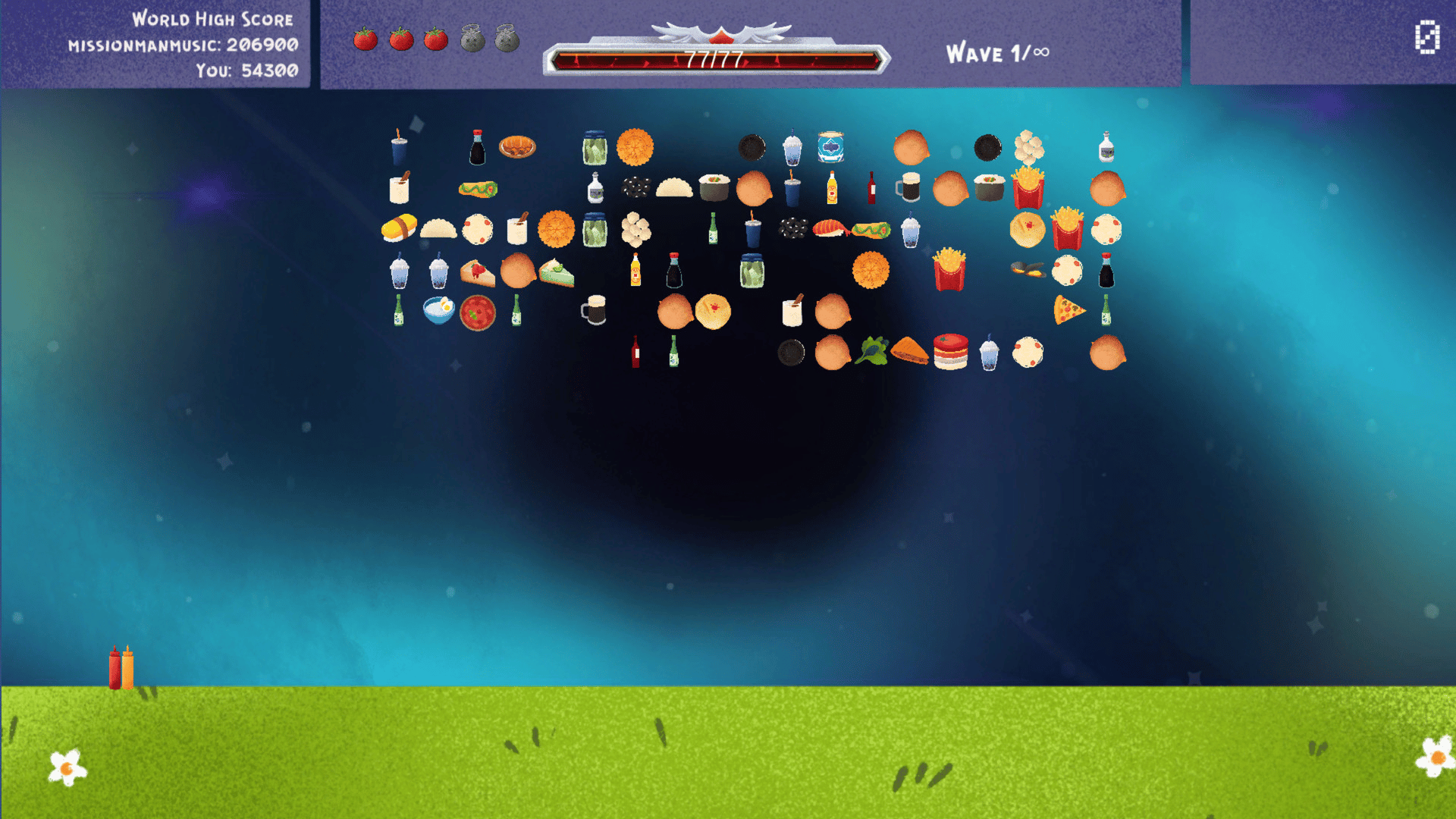 Return to classic 80s shooters while fighting off the fast food horde in this retro space shooter.