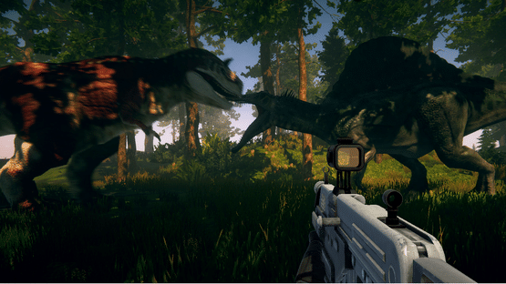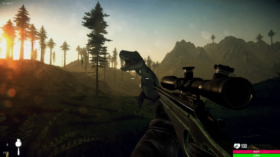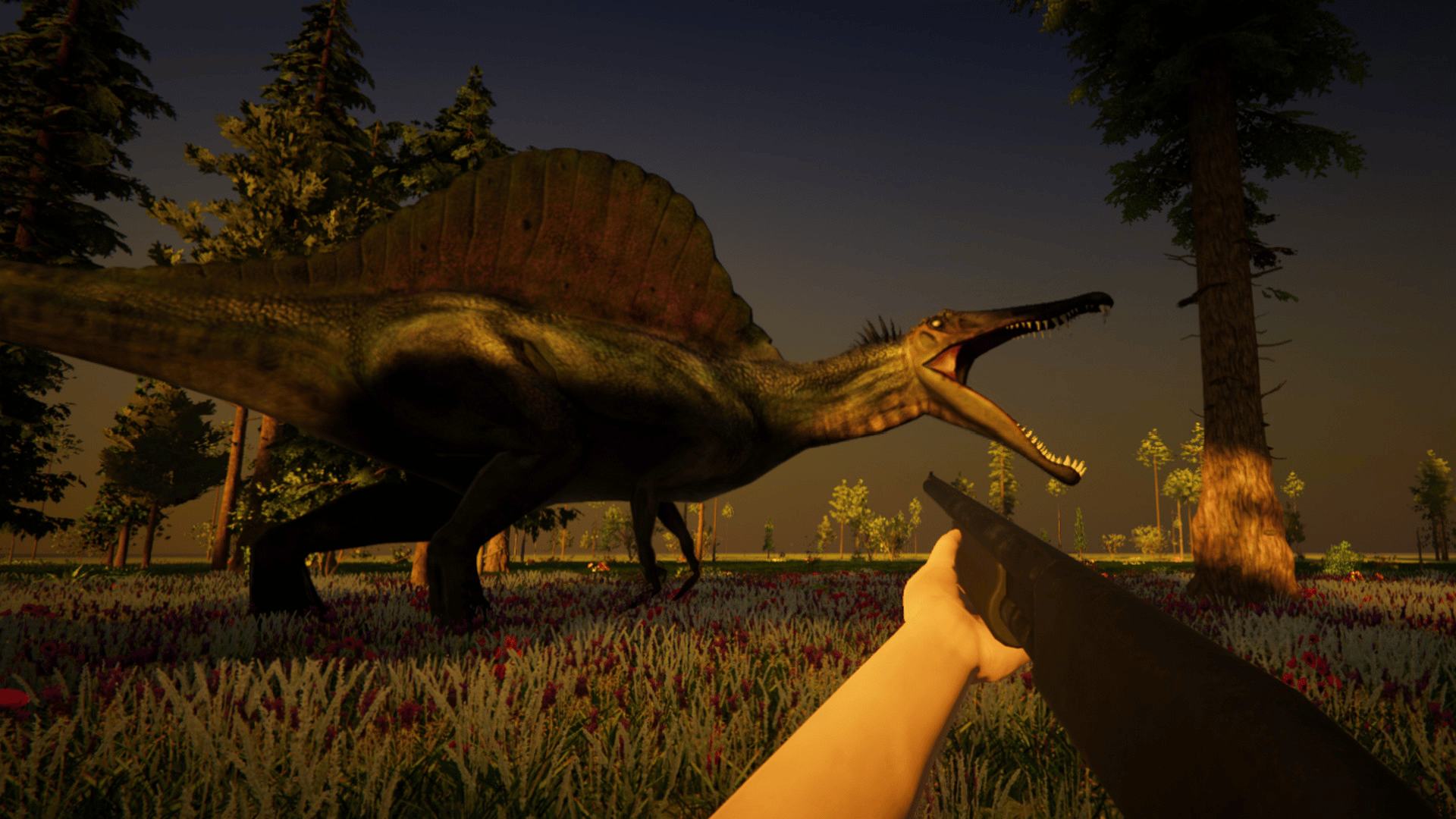 An unusual adventure in a jungle full of dangers! The game combines elements of a classic hunting simulator and survival. You traverse a vast, open world full of life and realistic fauna. Apart from many dinosaur species, different dangers await you, such as huge mosquitoes and poisonous plants. You will meet a lot of prehistoric reptiles. From small, agile specimen to powerful giants weighing tonnes. You will have a huge island from the Cretaceous Period at your disposal. Each traveled meter will be a test of survival! You will find a piece of a basic, random equipment. To survive, you have to conquer the world in search of a better weapon, technology, ammo. The island, where you are located, is inhabited (In early access, in the future we plan to add more dinosaur) by 5 different dinosaur species. From blood-thirsty Tyrannosaurus to small and agile Velociraptors. Choose your target carefully, find enough ammo, and stuff.