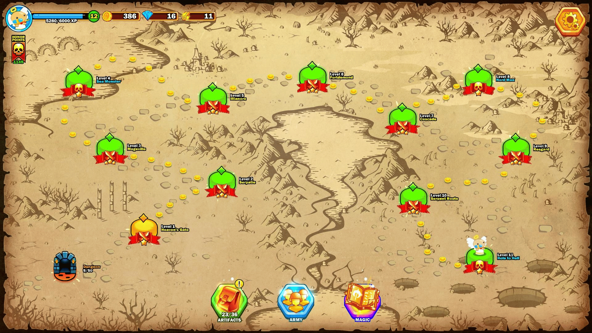 Play as Heaven or Hell in this semi-turn-based action strategy game. Gather your army, Challenge evil monsters, use magic and collect keys on your way to Victory!
