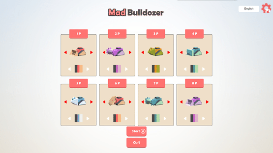 In the game, all kinds of bulldozers can spray flame, avoid or use varieties of props, and run crazily on the floating island of the mines. The player can control the bulldozer and knock the opponent down the floating island through collision. The game supports 1-8 players.