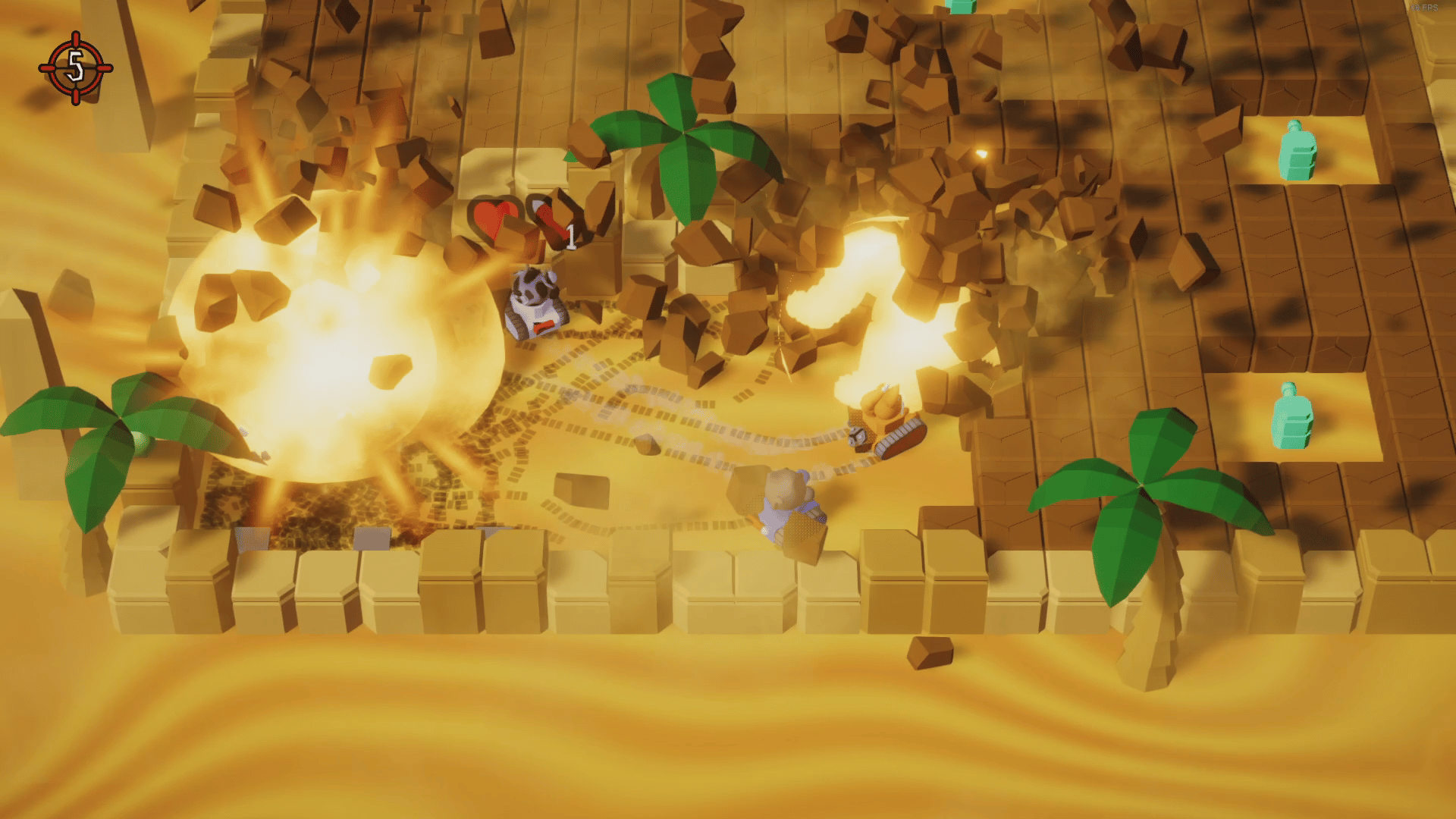 The Tank Lord has taken over the land. Assemble a team or tread solo to defeat his evil forces and take back what is rightfully ours. Take control of a cute animal in a tank and blast through your enemies with your bullets and bombs! Grab some nearby friends or play solo in this top-down, twin-stick shooter game! Choose a cute animal character to pilot your tank as you make your way through each level. Your tank will have unlimited bullets to use at your disposal for each mission, but you'll also find useful mine and missile pick-ups along the way. Levels are divided into several missions, and if you lose all your lives before the level is complete, you must start it back at the beginning! Discover new locations with each level, and perhaps some scary beasts to slay as well!