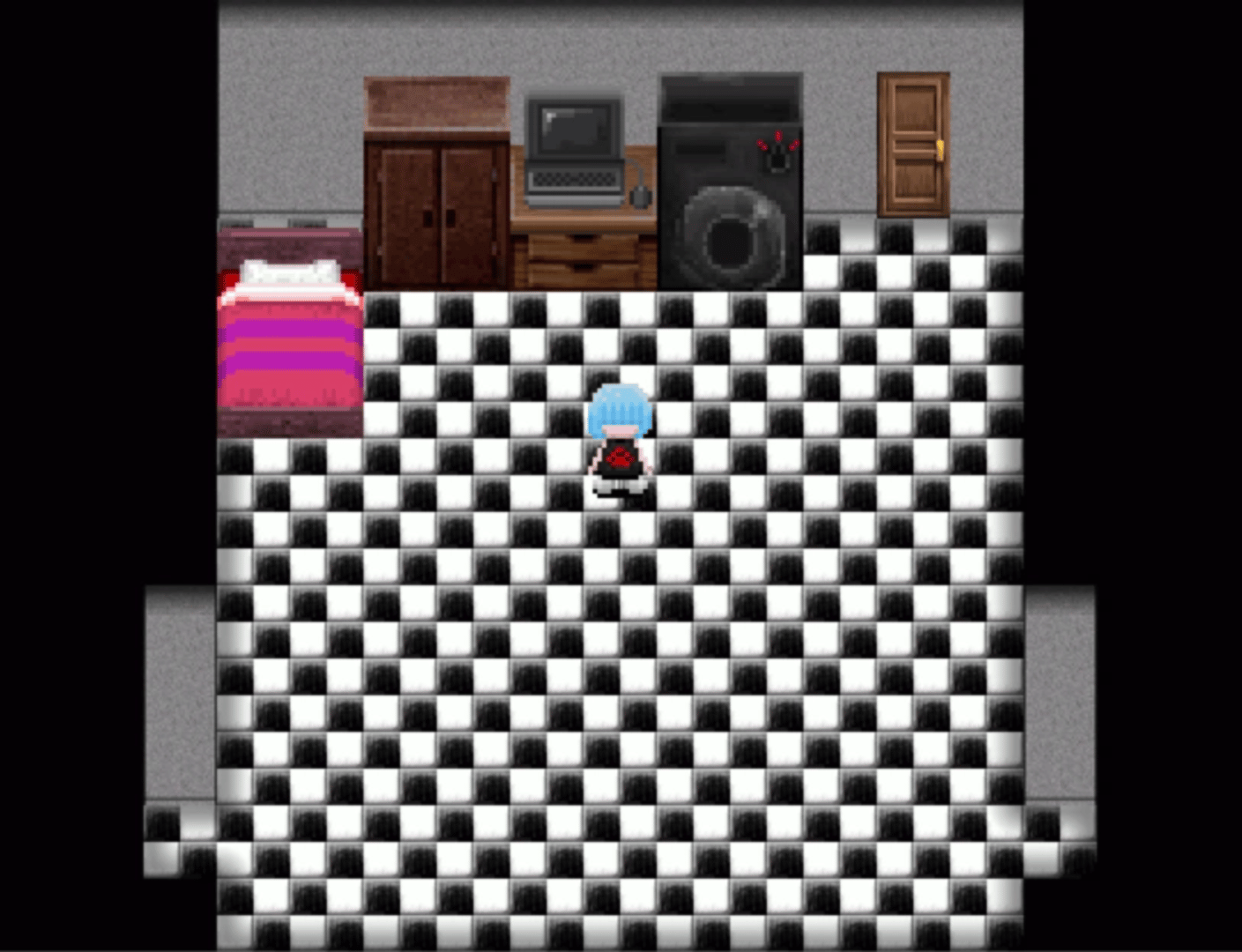 Me is an English Yume Nikki fangame created by Isasapiens. Me was remade at an unknown date, converted from RPG Maker 2003 to RPG Maker VX Ace. Me's atmosphere seems to draw inspiration from older fangames such as .flow, Yume 2kki and Hallucigenia in terms of its mixture of dark, visceral imagery and colorful, surreal imagery. In further reference to the title's multilingual definitions, motifs of eyes and sprouts are noticeable throughout the game.
