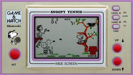 Snoopy Tennis is a Game & Watch video game released in 1982 by Nintendo. The game was very successful, perhaps due to the Snoopy label, with Nintendo producing an estimated 1,200,000 worldwide. In the game, you control Snoopy, moving him up and down to make him hit the oncoming tennis balls with your racket. It was released on the Wide Screen format. A version of the game was released as a keychain title under the mini-classics label.