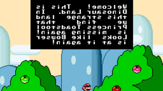 dlroW oiraM repuS is a ROM hack of Super Mario World by dotsarecool. It puts Mario at the end of every level and he must make his way back to the beginning. All 96 exits are modified, as well as the overworld.