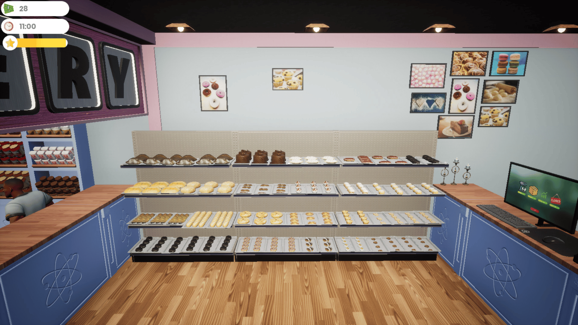 Run Your Own Bakery Shop . Manage Economics , keep and eye on your resources while baking 25 types of bread and cakes , and be the cashier in a bakery shop on the main street