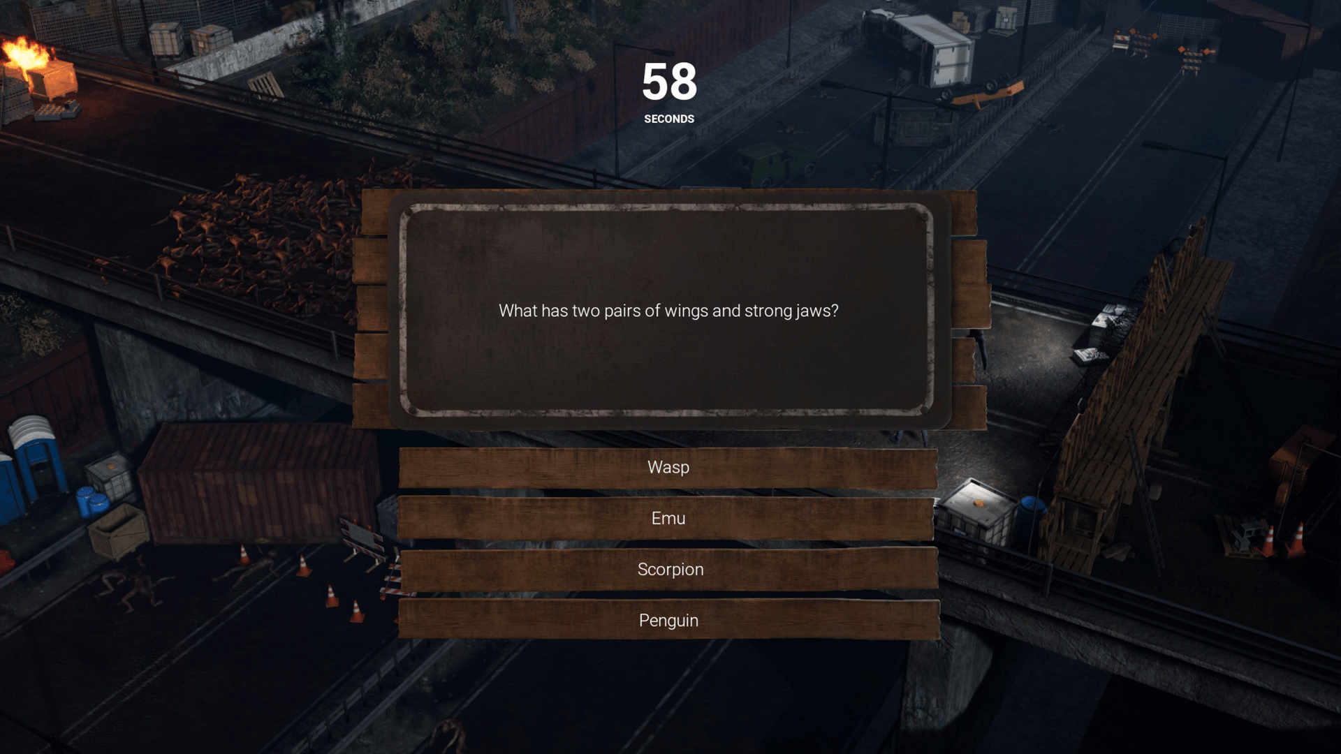 Grab some friends to help you fend off a horde of brain eating zombies by answering 1000's of trivia questions! Earn killstreaks by answering multiple questions in a row. Choose your difficulty and how many waves you can survive against, or even try our survival endless mode.