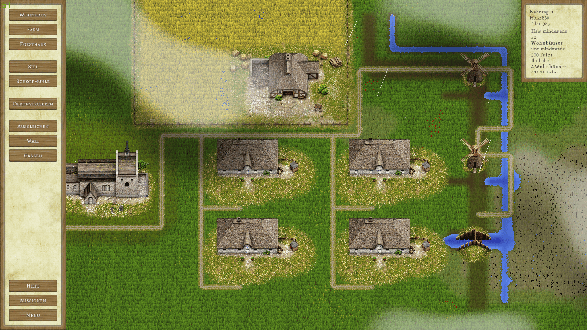 Deichgraf is a small, calm building game. Build your own village and protect it against water caused by floods and heavy rain!
