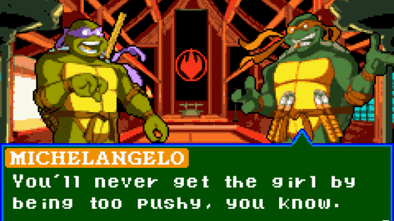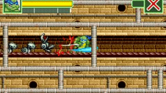 Teenage Mutant Ninja Turtles is a 2003 Game Boy Advance video game, based on the 2003 TV series. In this game each Turtle has his own unique set of levels to complete. In addition to the traditional side-scrolling levels, there are third-person view races, a shell-glider level for Donatello and a bike race between Raphael and Casey Jones. The game was also issued in a double pack with it's sequel TMNT 2: Battle Nexus.