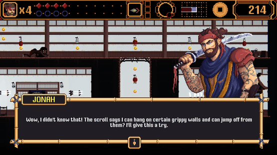 A fast-paced pixel art metroidvania, where the musician Jonah Weingarten is drawn to feudal Japan via an arcade station. Once there, he must face vicious yokai hordes and beat the game to return to his own era.