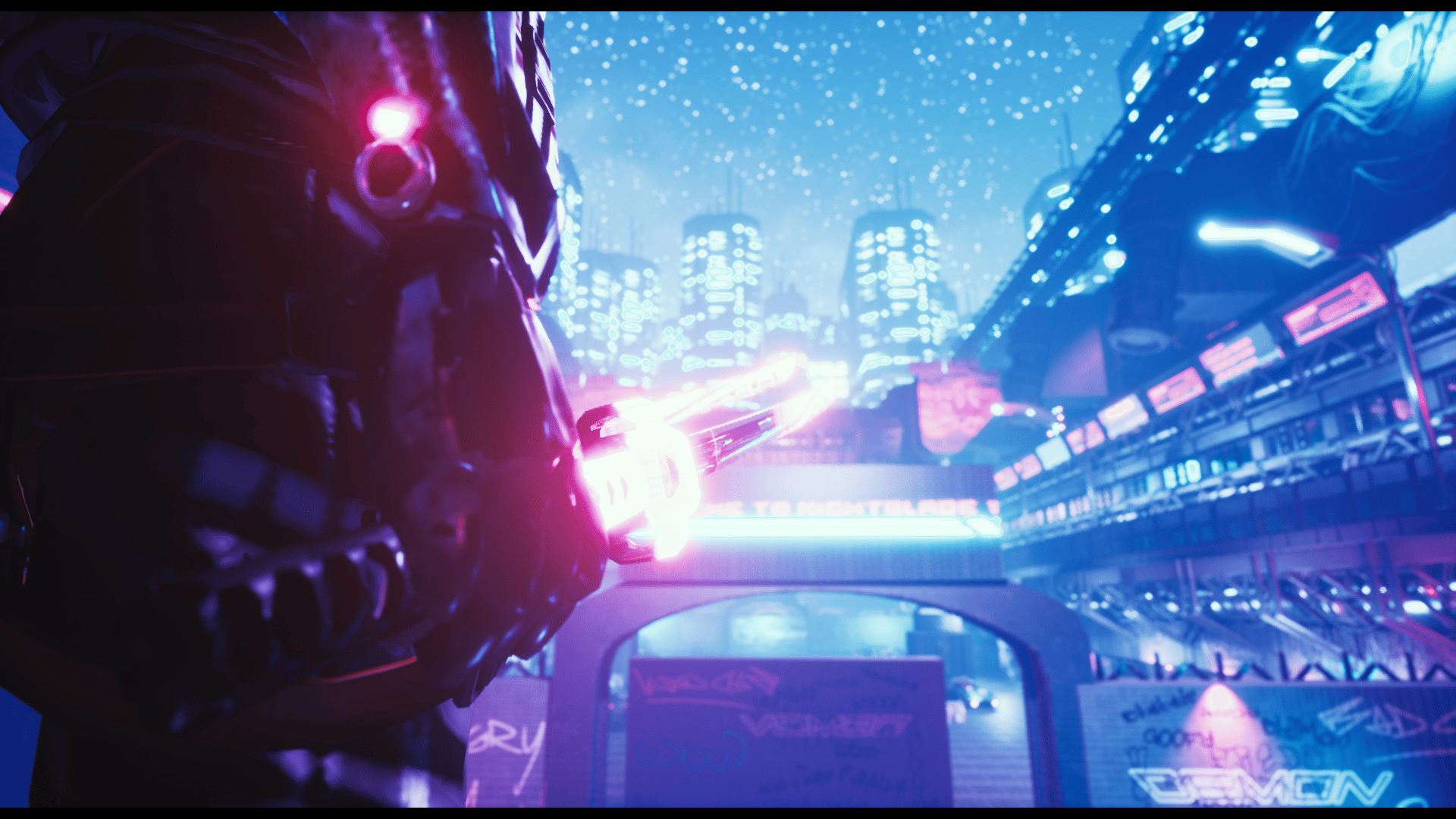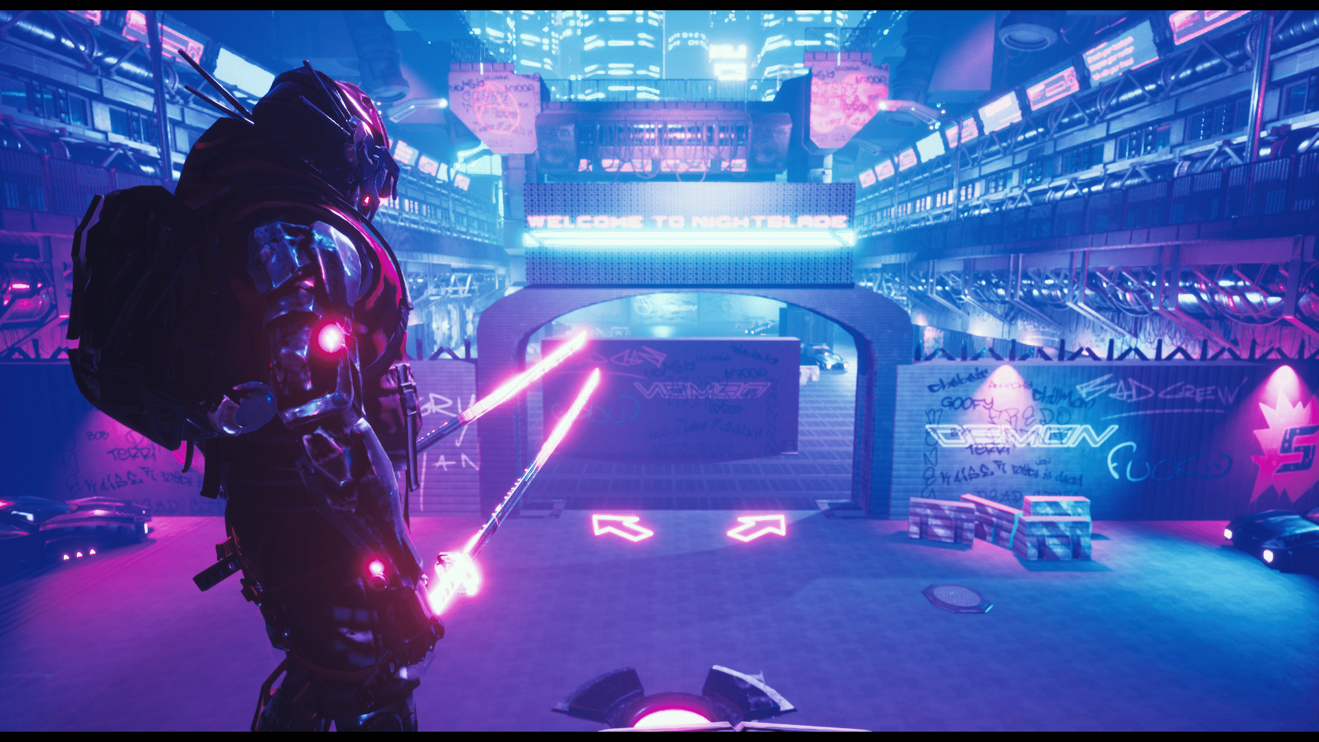 Night Blade is a Multiplayer Fast-Paced PvP game. Players (2-8) fight in various game modes to win in a cyberpunk arena.