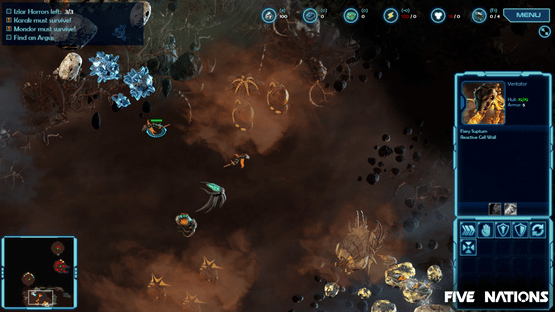 Five Nations is a real-time sci-fi strategy game for PC platform. Encompassing tactical combat in space in real-time mixed with micromanagement of economy, construction, and production featuring different kind of single player modes.