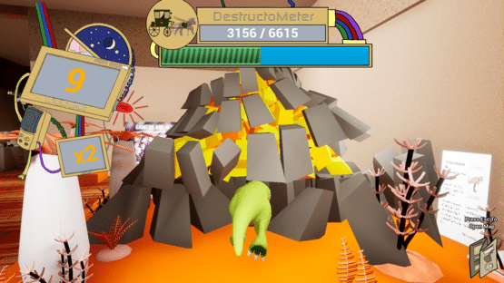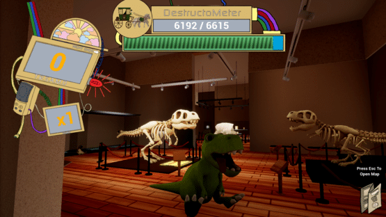 Play as Tony, the Tyrannosaurus Rex! Tony is lovable, hungry, cute, and eager to watch everything crash and burn. Bust and break your way through three fun-filled exhibits to score points, impress Tim, and make it back home! Sweep the competition with your tail swipe, chew up your enemies, and destroy priceless artifacts to show them whose boss!
