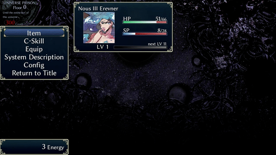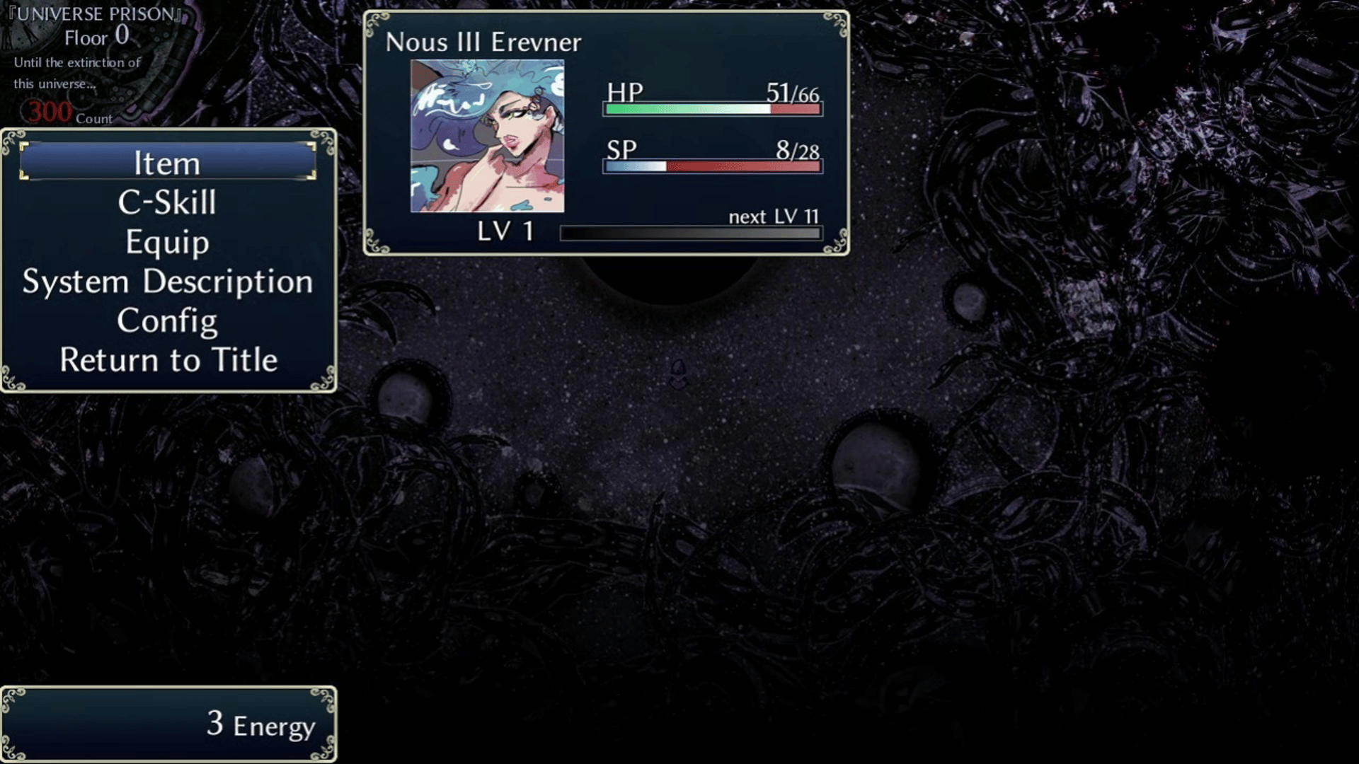 Extreme survival adventure. Escape from the vast "Universe Prison" dungeon of all 10 dimension floors! Roguelike 2D Random Dungeon RPG with Turn-based Command-select Battle. Everything are randomly setting, playing character, enemies, party members, maps, items, equipment, shops, facilities.