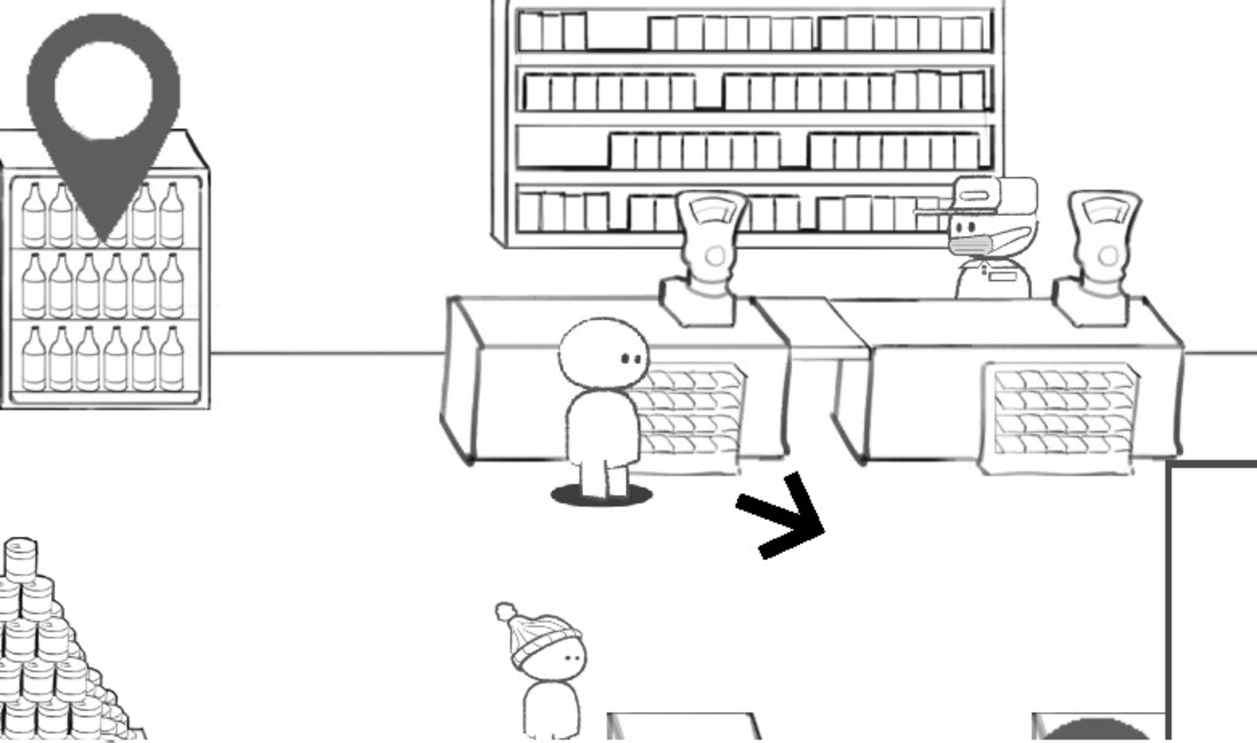 A very small game about social distancing in Covid-19 times, where you play a small scenario in daily life. You play a character that is going to a party. While on your way you need to try and keep your social distance to the people in the town. Before you can arrive at the party you will need to pick up some snacks that you can bring.