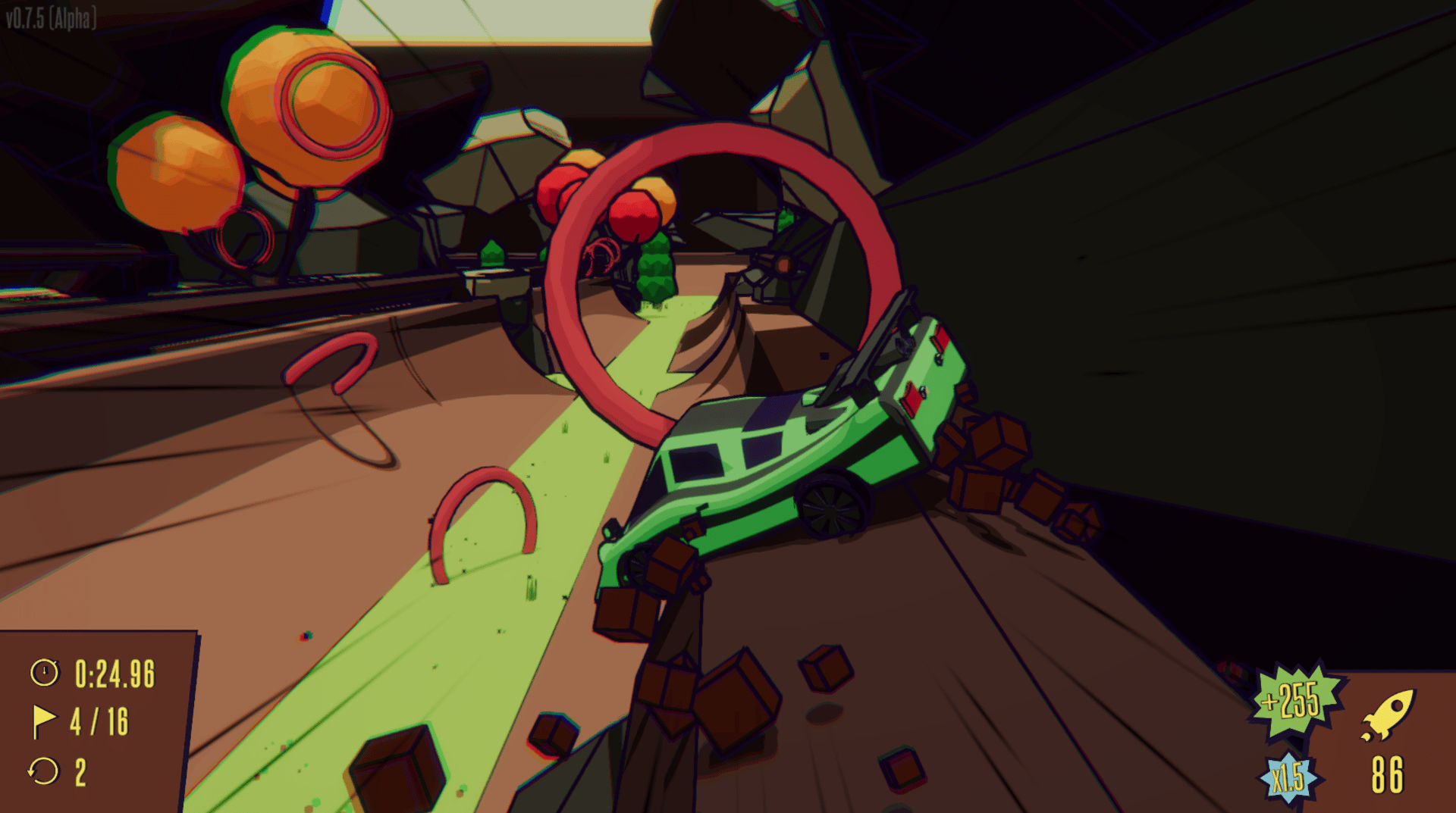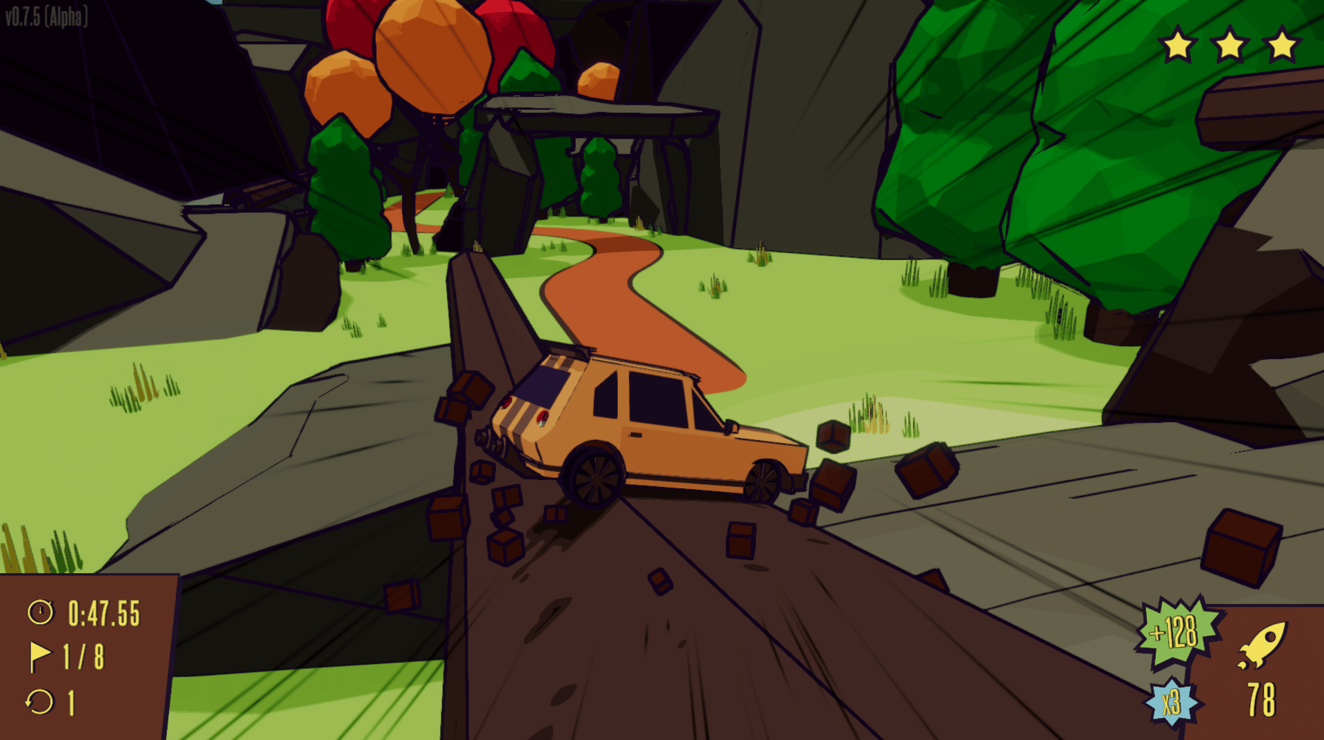 Traction Control is a prototype downhill exploration racer where only some of the laws of physics apply. Pick your vehicle and drift, jump, flip, spin, roll, and boost through a series of time and point-based challenges to get to the top of the leaderboard. The game evokes early kart-racing games and will keep you thinking of the best way to get down the mountain to the finish line!