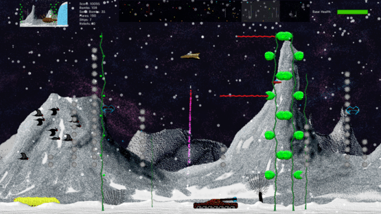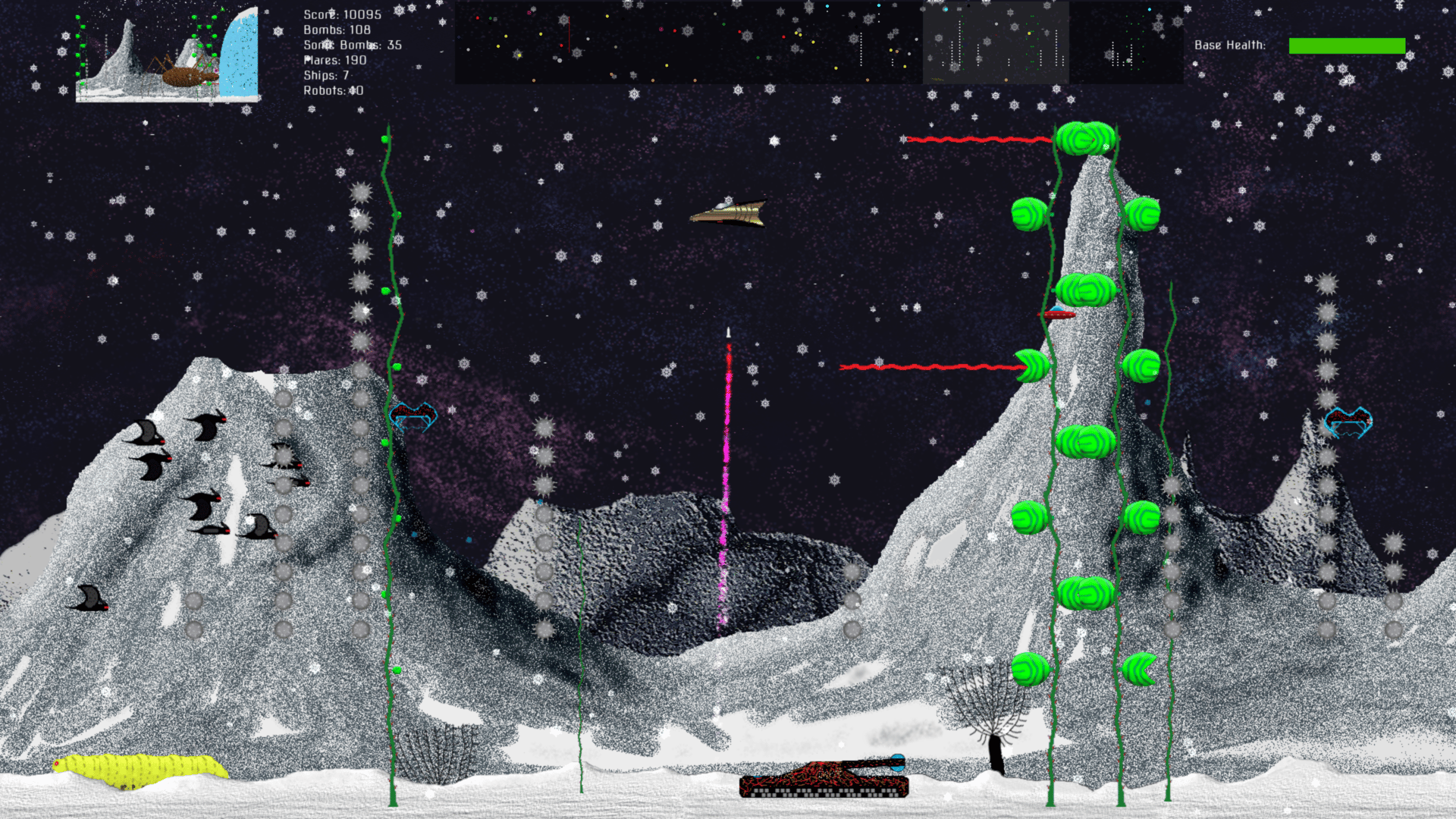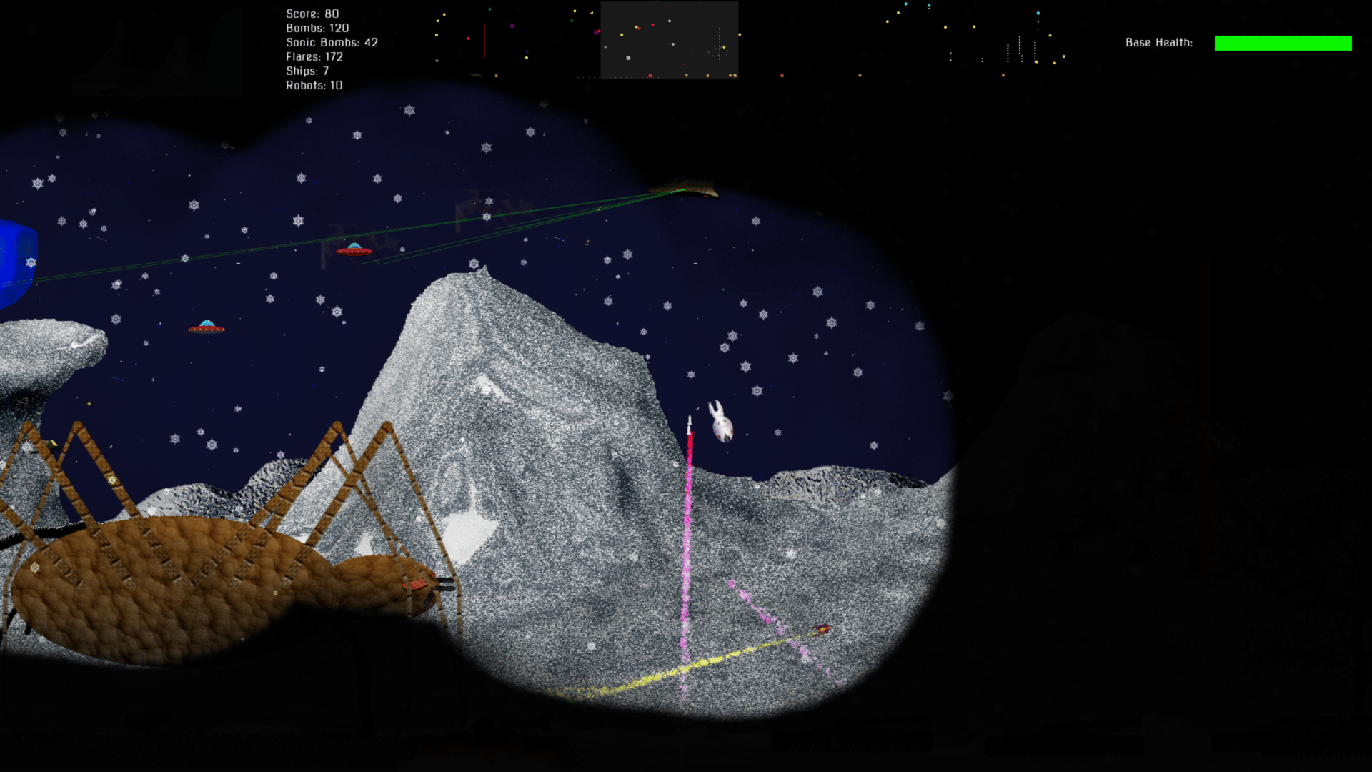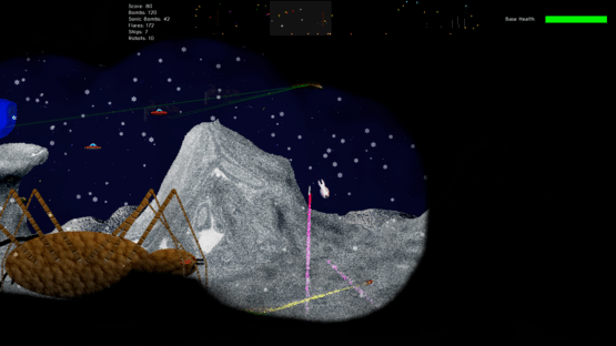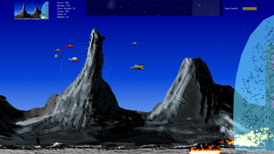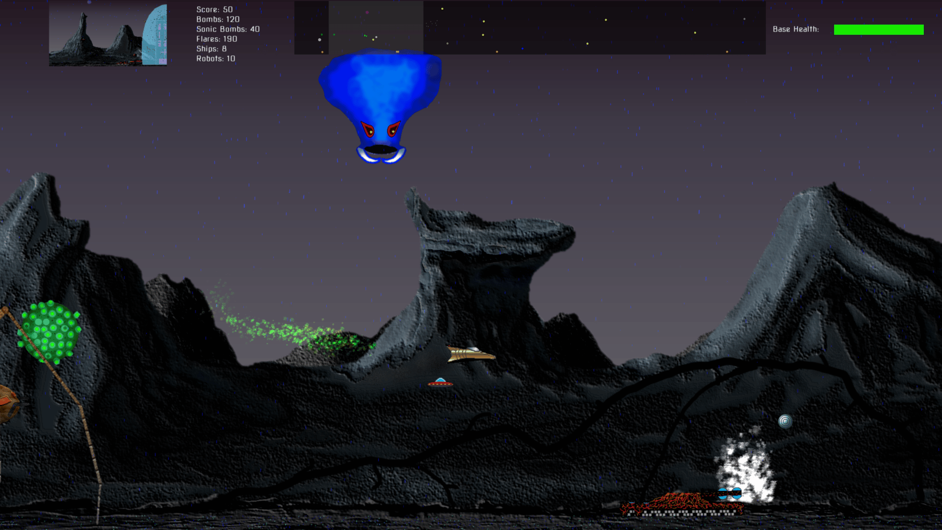 This is a challenging, old-school, retro, side-scrolling shooter. The player must defend the base against 28 waves of alien attackers. There are also 10 bonus twin-stick shooter levels, where the player controls a security robot defending the base from enemies tunneling in from below.