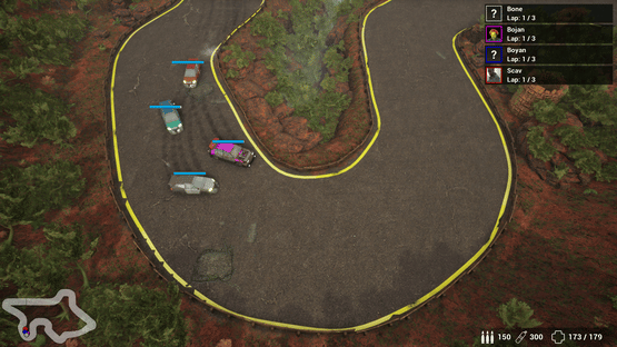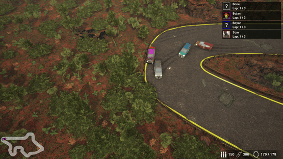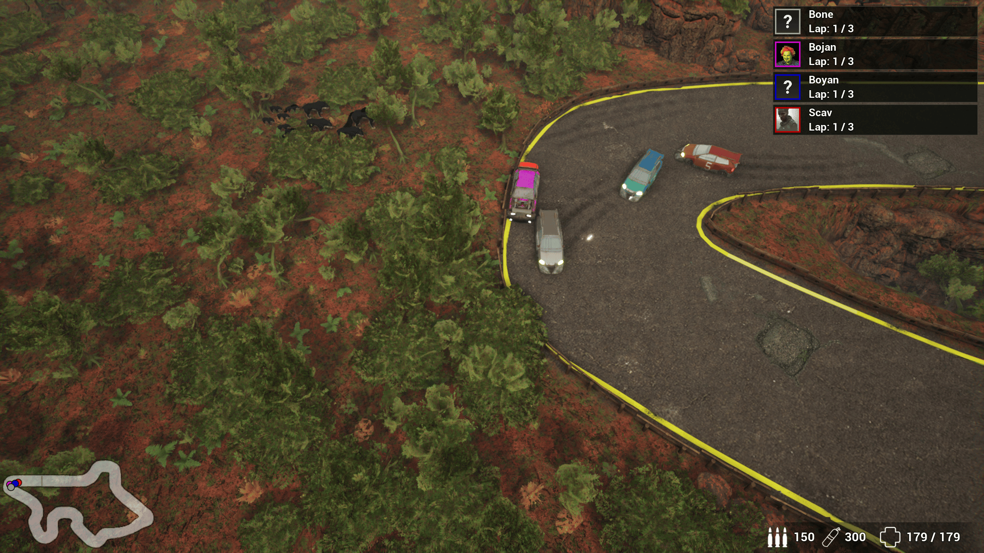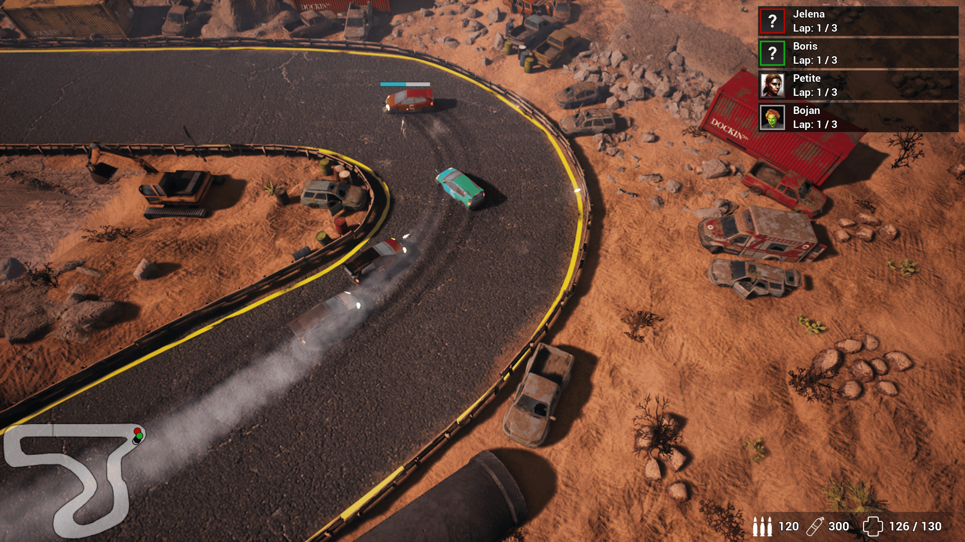 Barely Racing is an isometric view racing game, inspired strongly by Death Rally and other old-school racing games. However, we spiced it up a bit with online play and weapon choice.