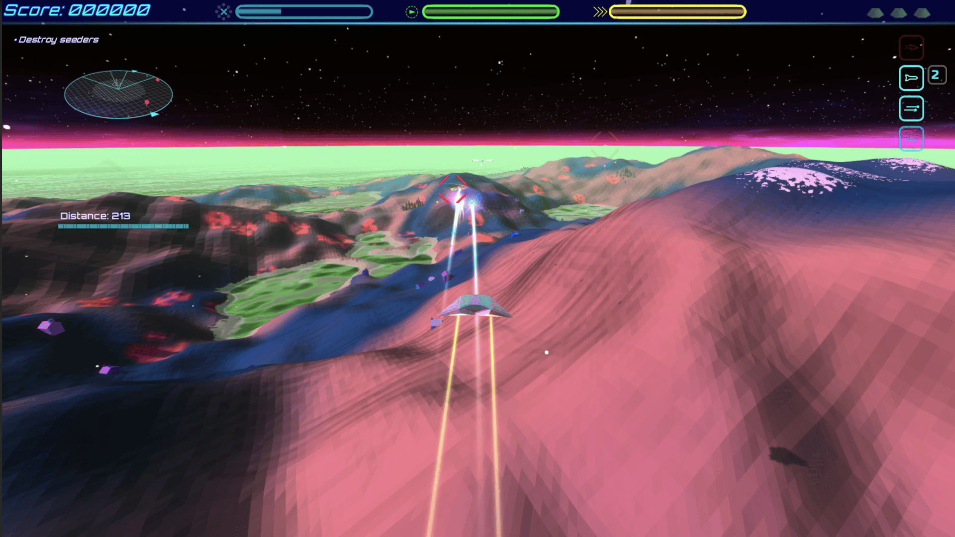Fly into battle across multiple bite-size levels of exciting 3D aerial combat! Do you focus on taking out the alien fighters? Or rescue the stranded inhabitants before they're abducted? What about the deadly terraforming virus sweeping the surface below?