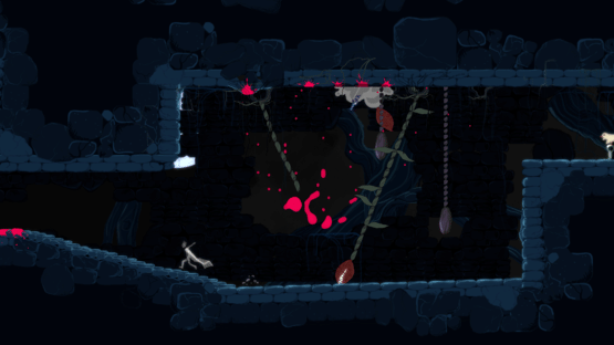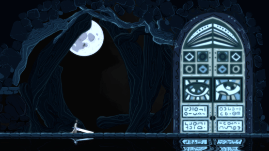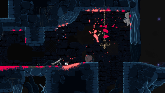 Swordswallower is a psych-goth action platformer where players traverse and fight only by throwing their massive enchanted sword. The player can’t jump, instead launching their sword into the environment and pulling themselves toward it with tremendous force.