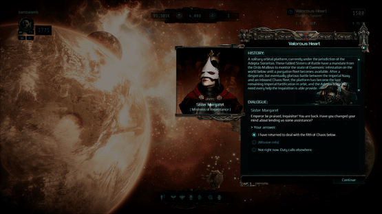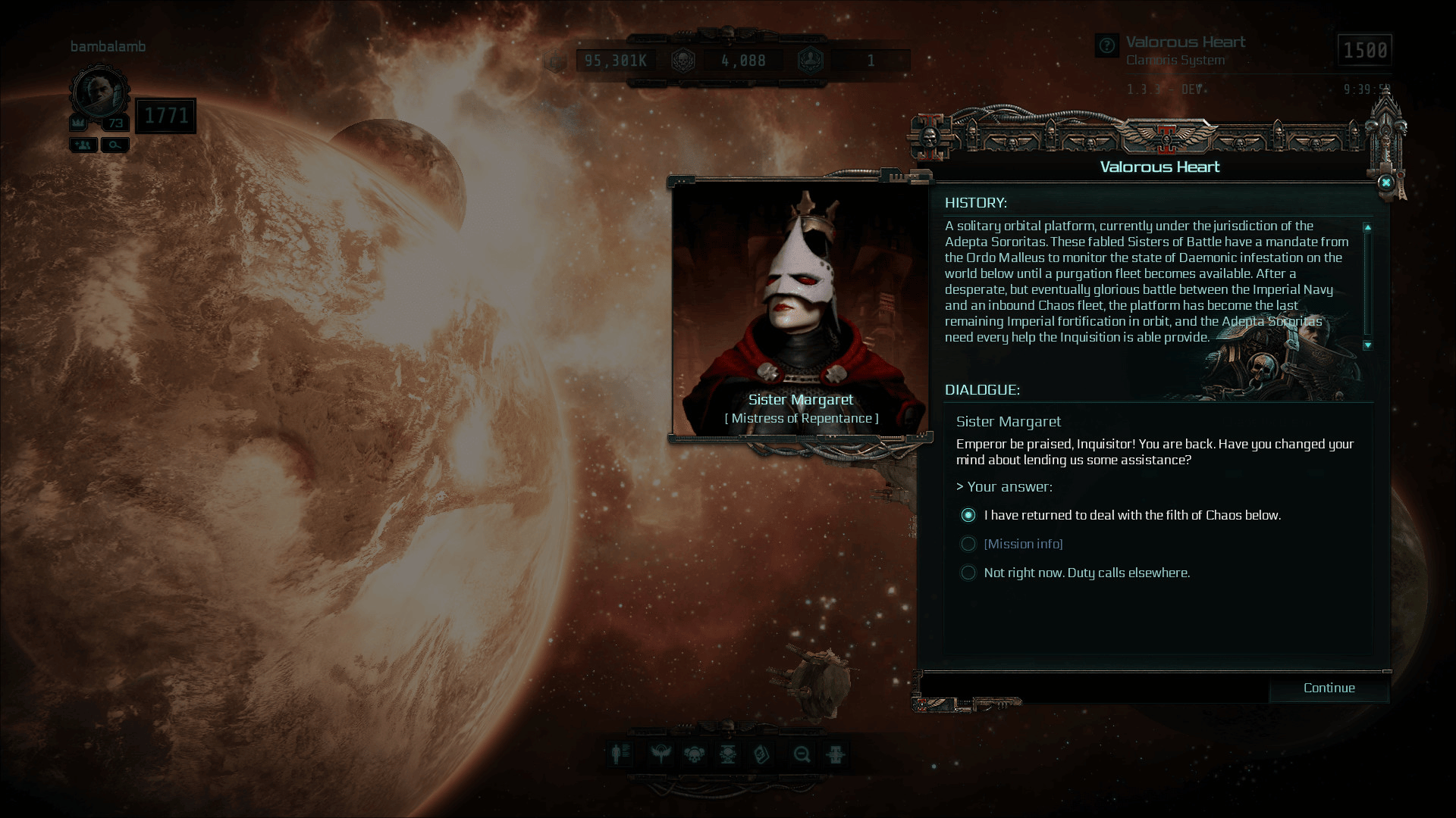 An unfortunate Imperial world has been overrun by Chaos Daemons. Exterminatus is not yet possible, so selfless sacrifice is needed to keep the tide from spiraling out of control. Are you willing to descend amidst the Daemonic hordes and call orbital strikes while you are fighting down there - for the sake of the Imperium of Man?