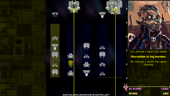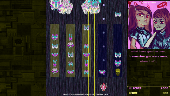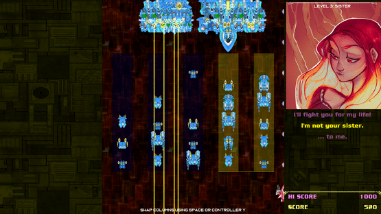 Dodge enemy beams with your space fighter, kill huge bosses, and sing along to seven distinct songs in this unique rock opera videogame.