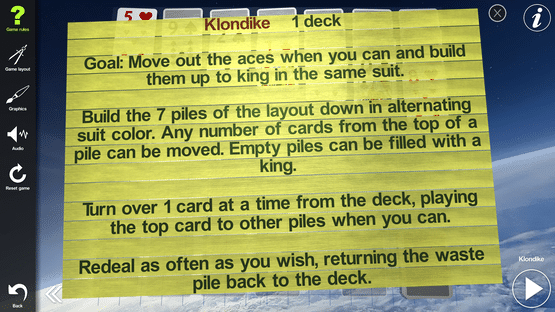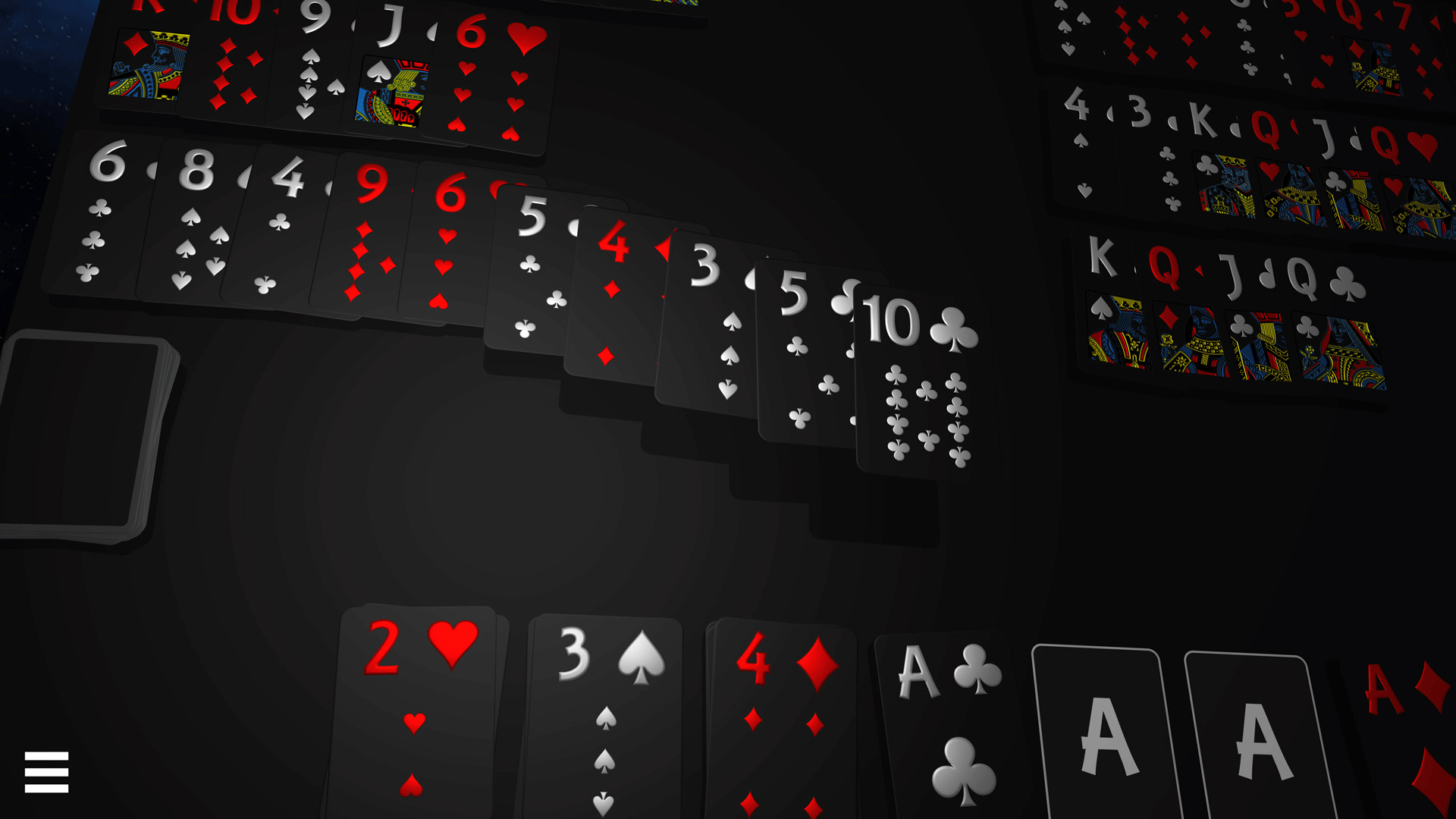 3D solitaire includes Klondike, Eight Off, Miss Milligan, Simple Simon, Eliminator, and more