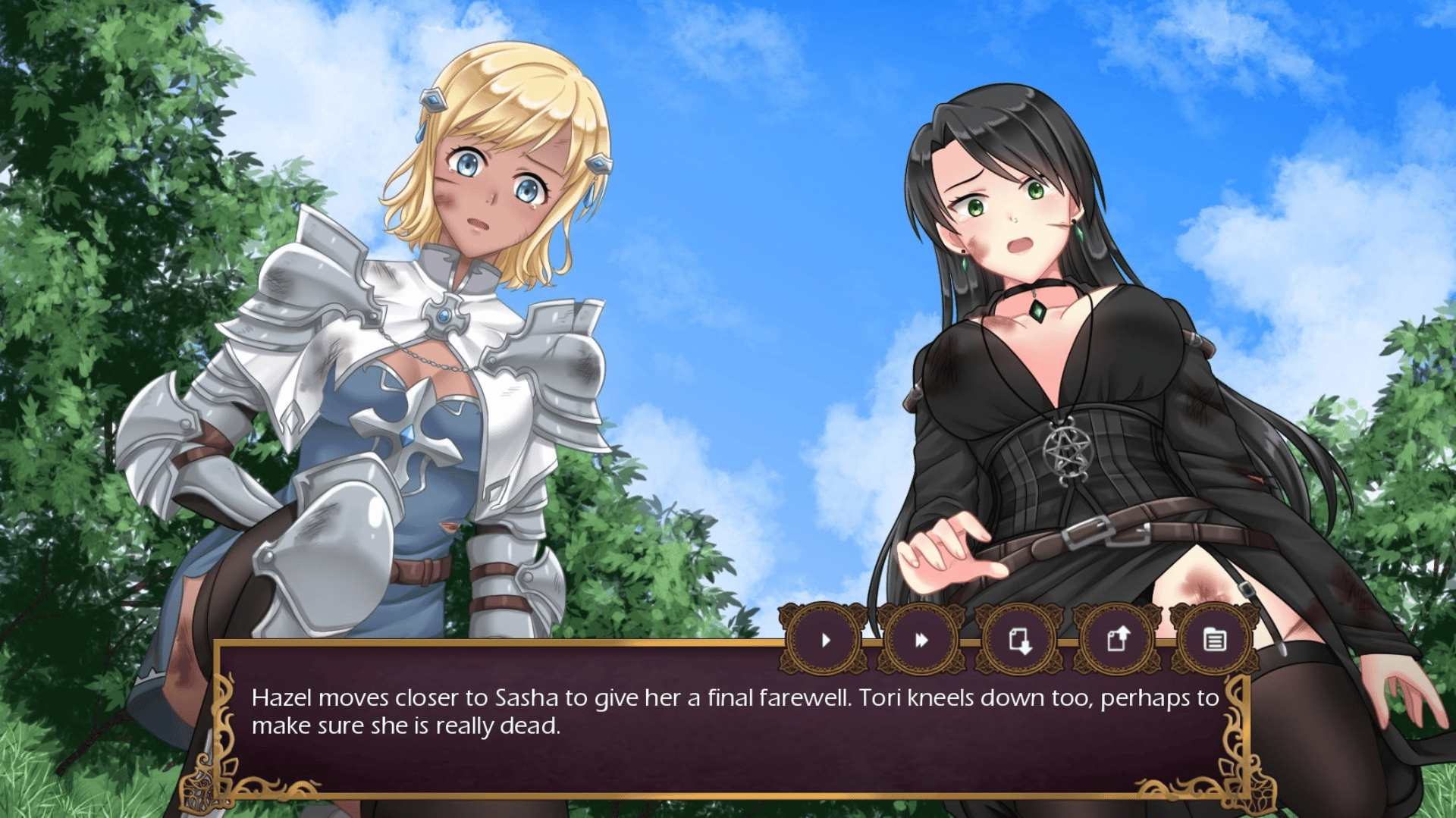 In this dark visual novel, discover what led the apprentice witch, Hazel, to her untimely demise. There is, however, a chance for her to cheat death. Can you find her happy ending with one of two love interests - Tori the tough paladin, or Sasha the deceiving assassin?
