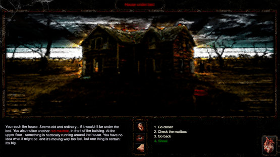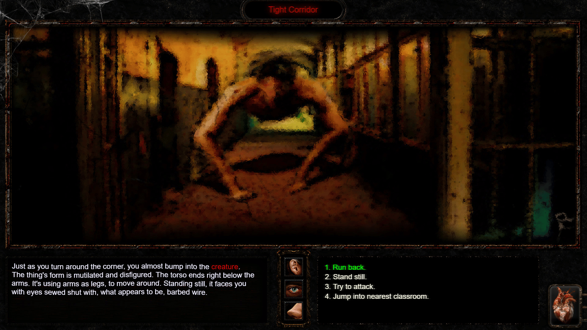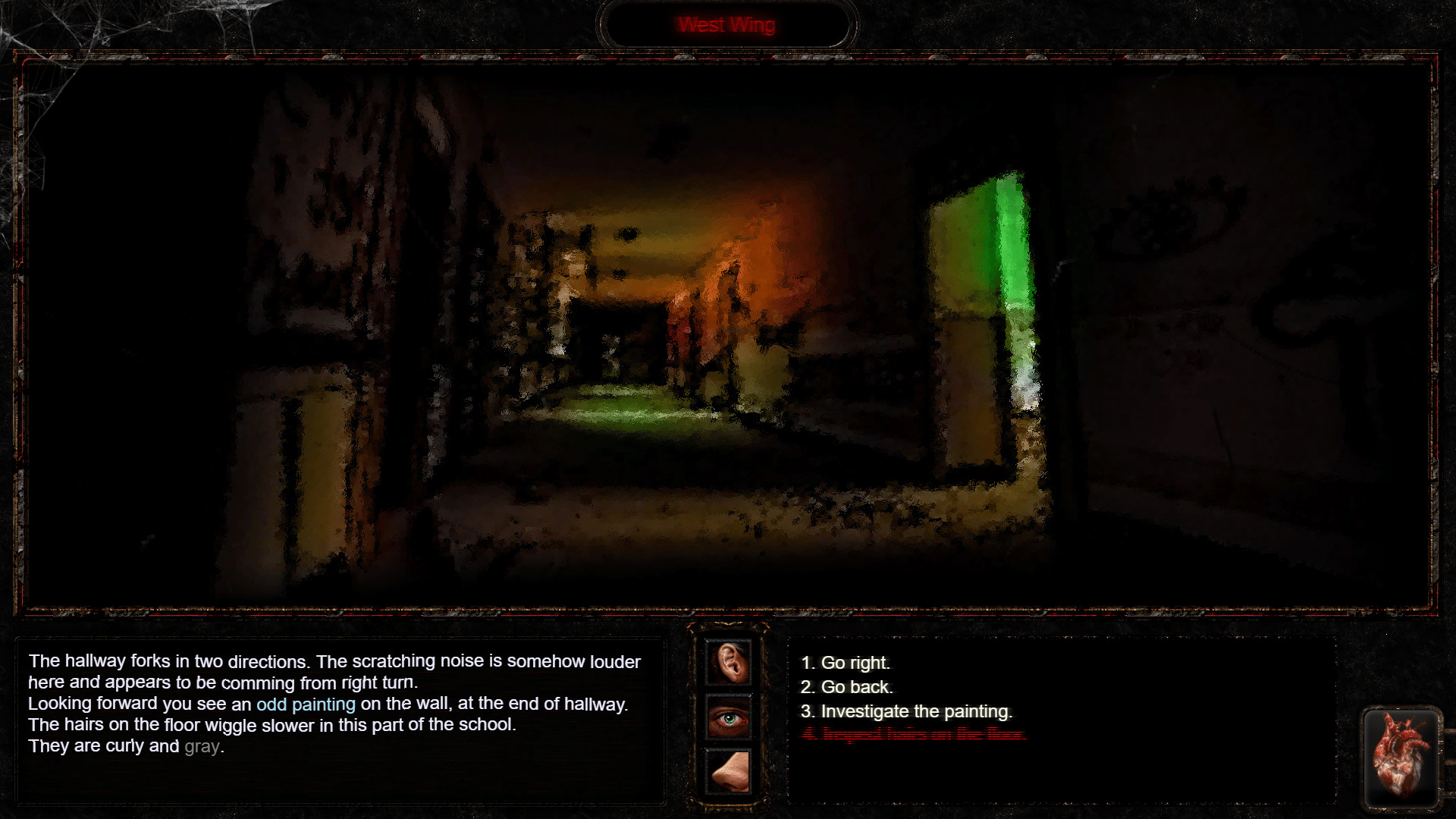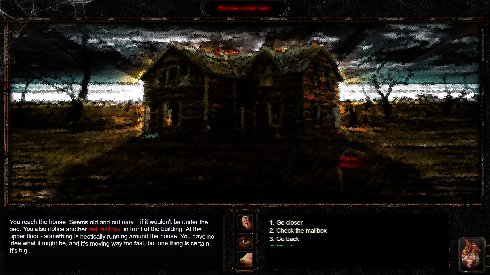 In a nutshell: Choose Your Own Adventure, Choices Matter, Text-based, Point & Click, Exploration, Multiple Endings and Interactive Fiction. Dark and surreal psychological horror. Strongly inspired by Lovecraft, H.R. Giger and Zdzisław Beksiński.