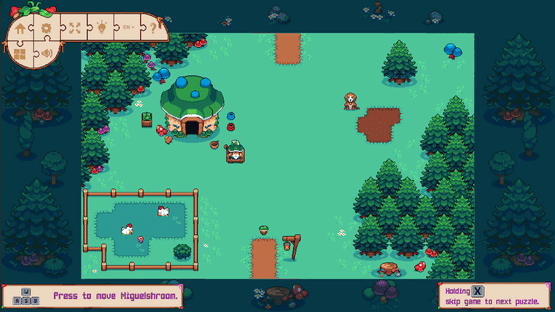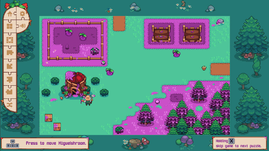 Reassemble Miguelshroom's first day at school, in this puzzle followed by a narrative on a top-down platform. Guide the cute mushroom that lives in a fantastic world in its discoveries.