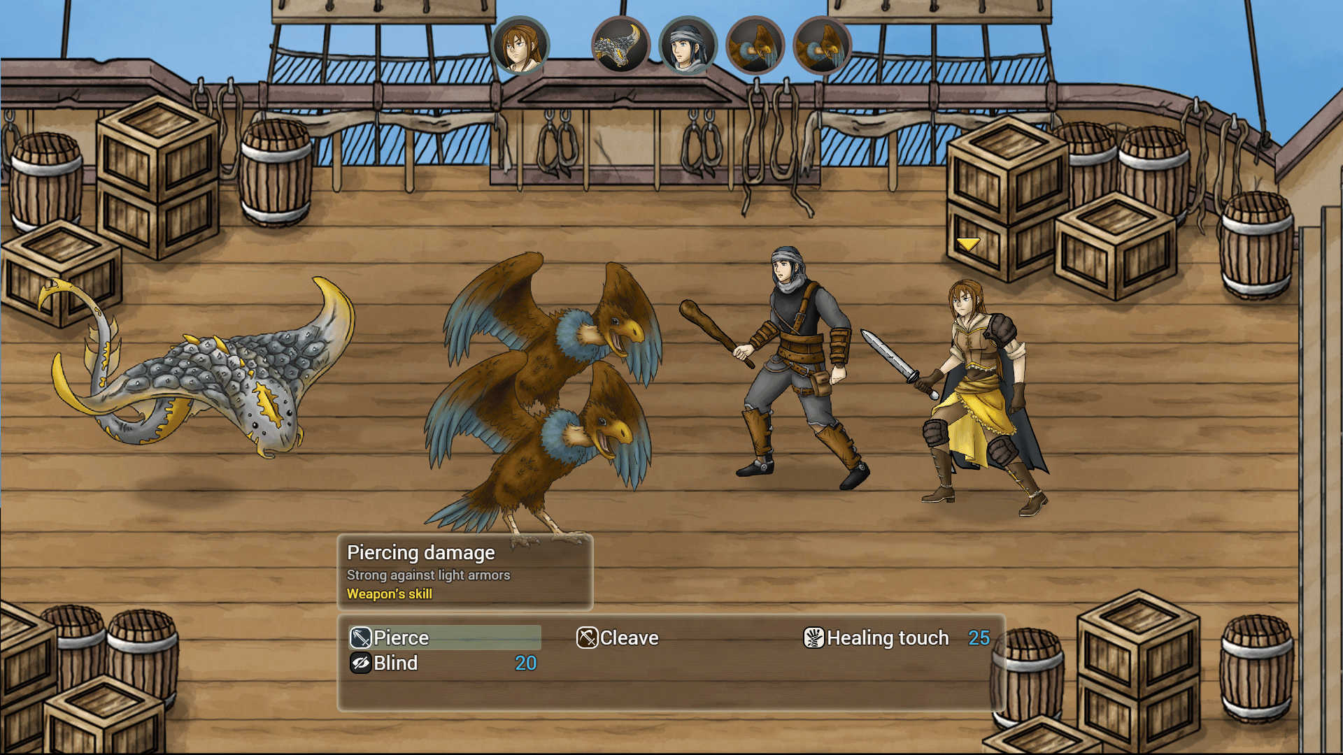 In Clouds of Rain you will play multiple characters, each with his own story. Explore a hand drawn world with various regions, face harsh battles and sail the skies. Resource management, preparation and tactical fights are at the core of the game.