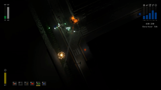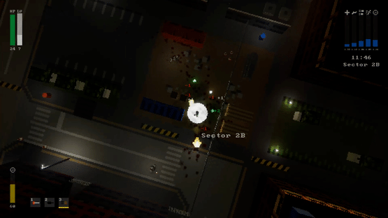 Bullet hell roguelite with challenging AI, fun weapons, monster infighting, and speed running.