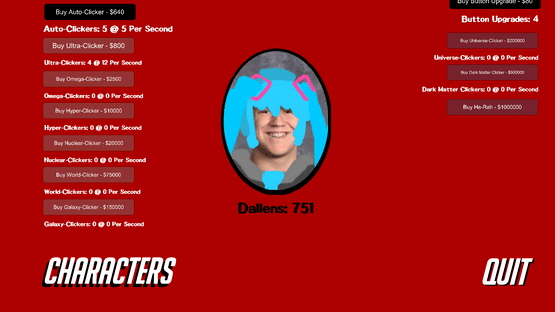 Dallen Clicker Ultimate is an enhanced remake of Dallen Clicker, an incremental game.