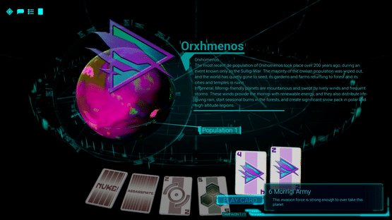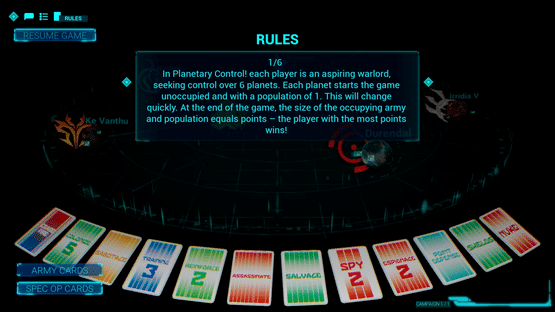Invade strange worlds with alien armies! populate and shield your planets! Assassinate, Sabotage and Nuke your opponents! Collect victory points and achieve... PLANETARY CONTROL!