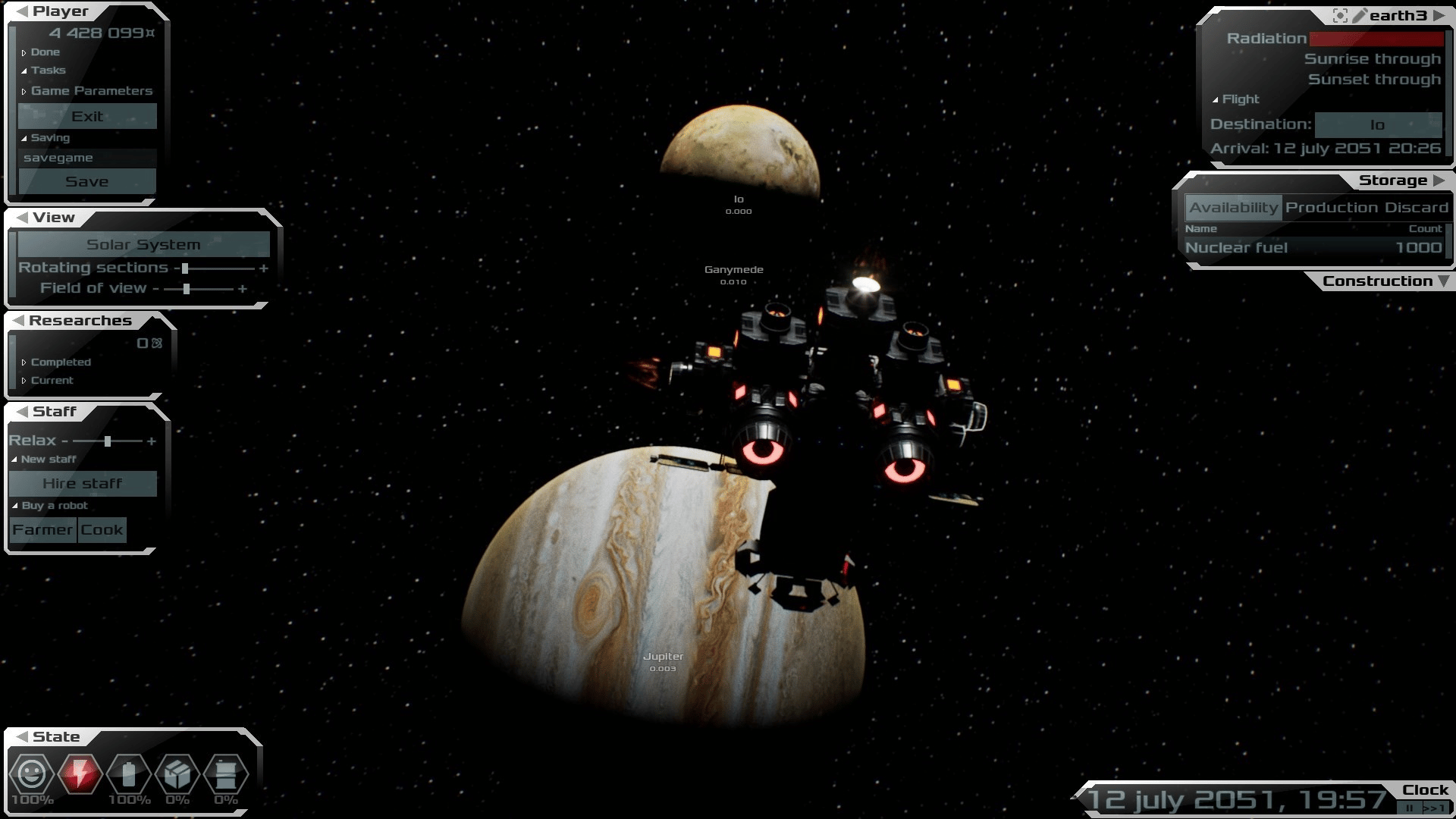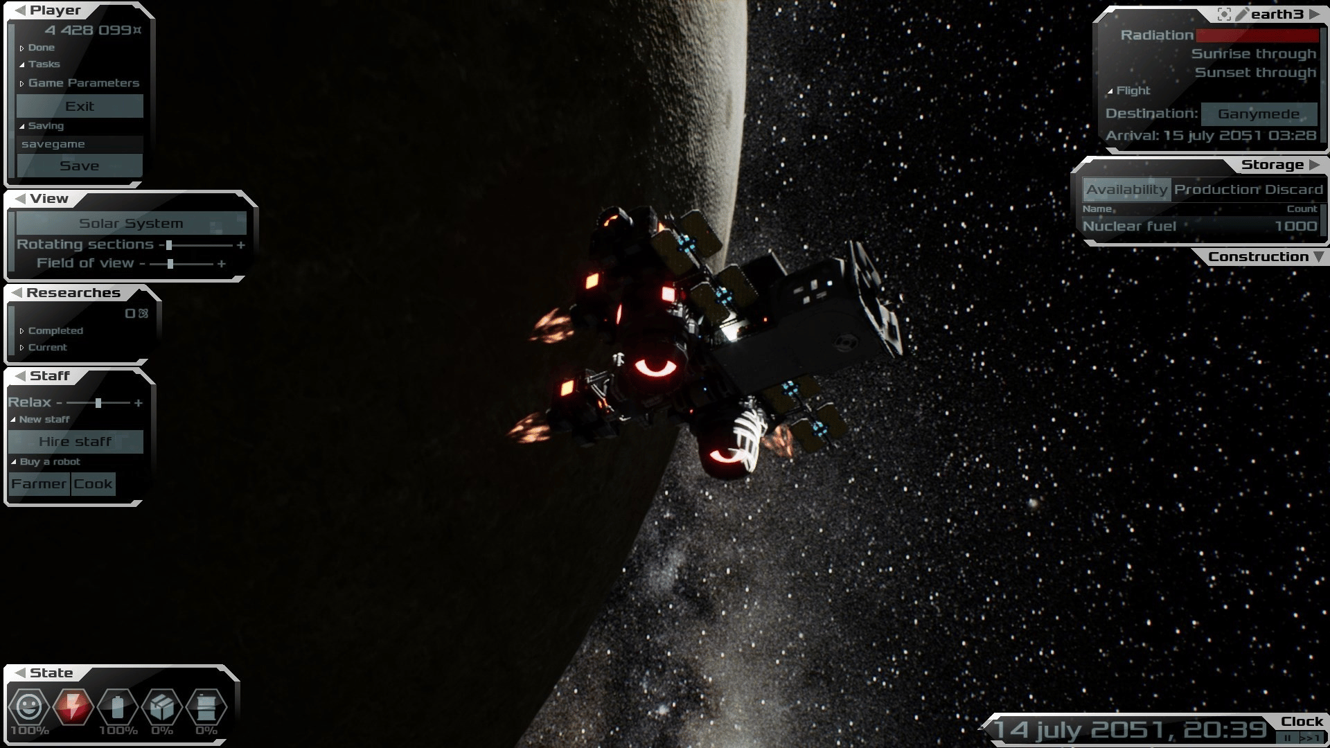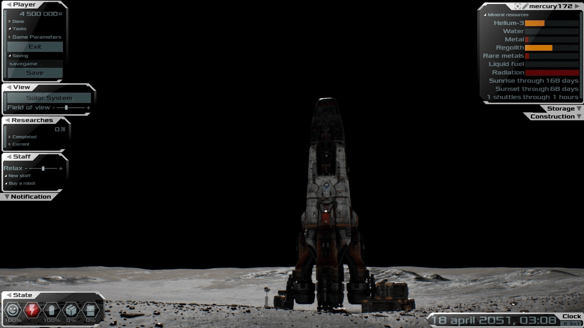 Build and manage colonies on the surfaces of planets and satellites, as well as space stations. With realistic physics of orbital flights.