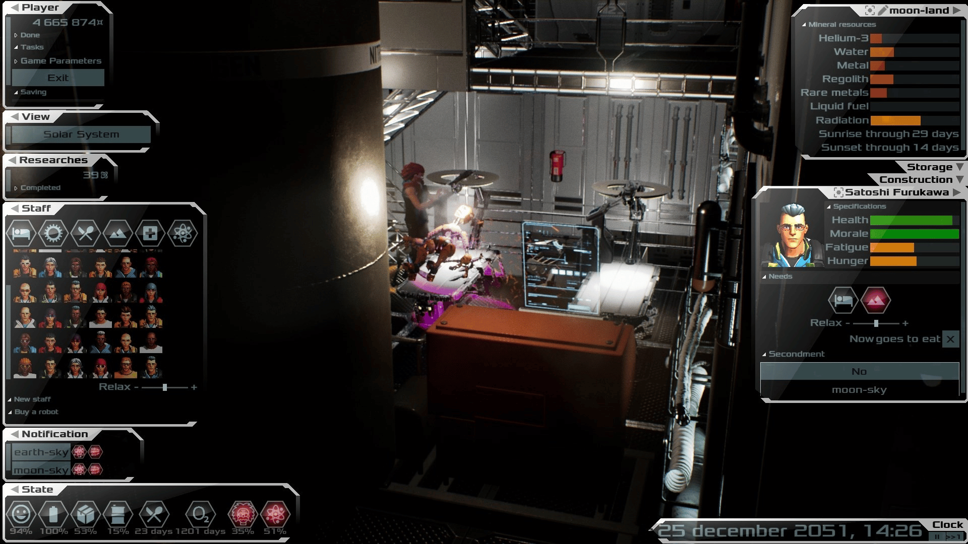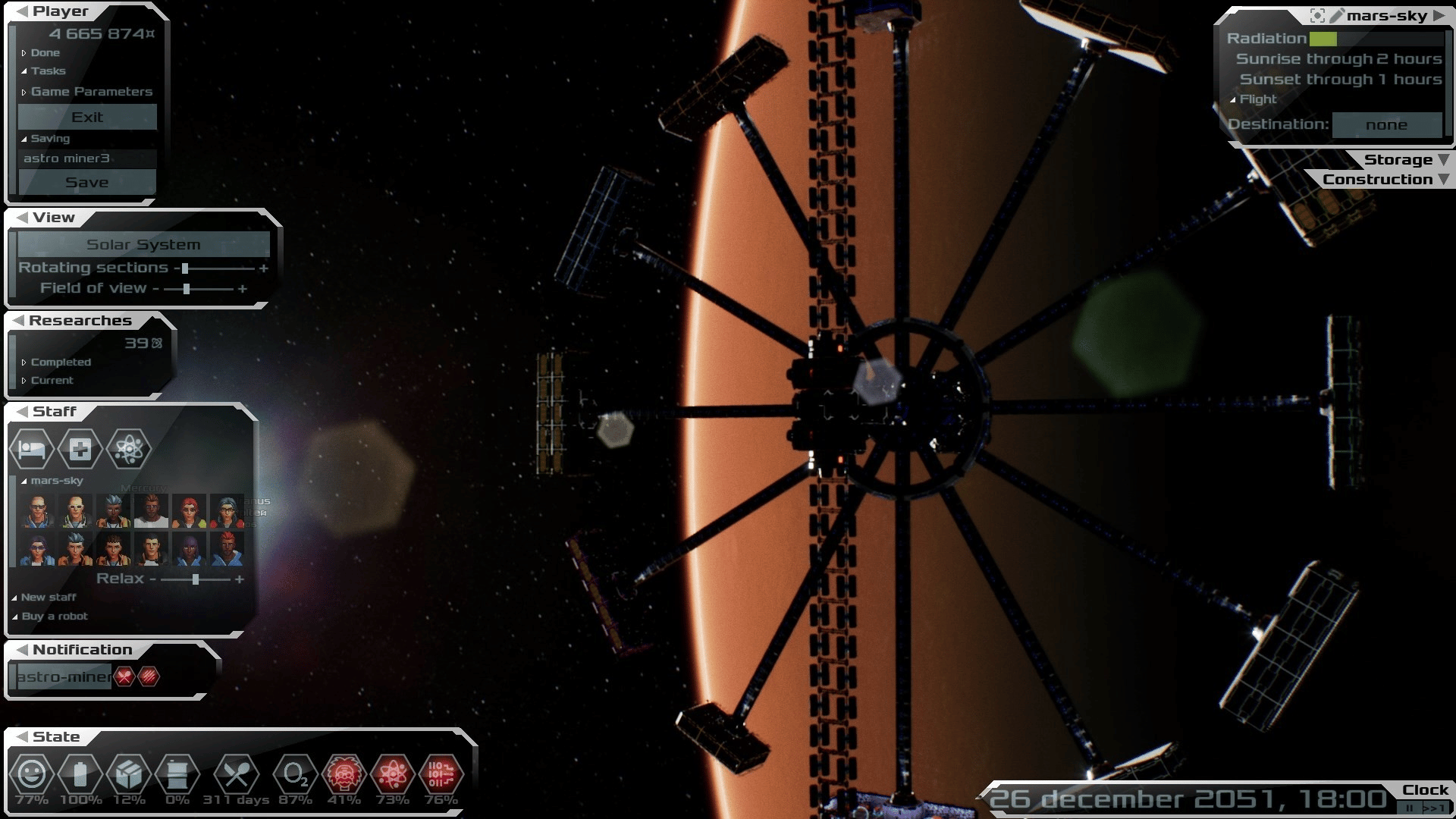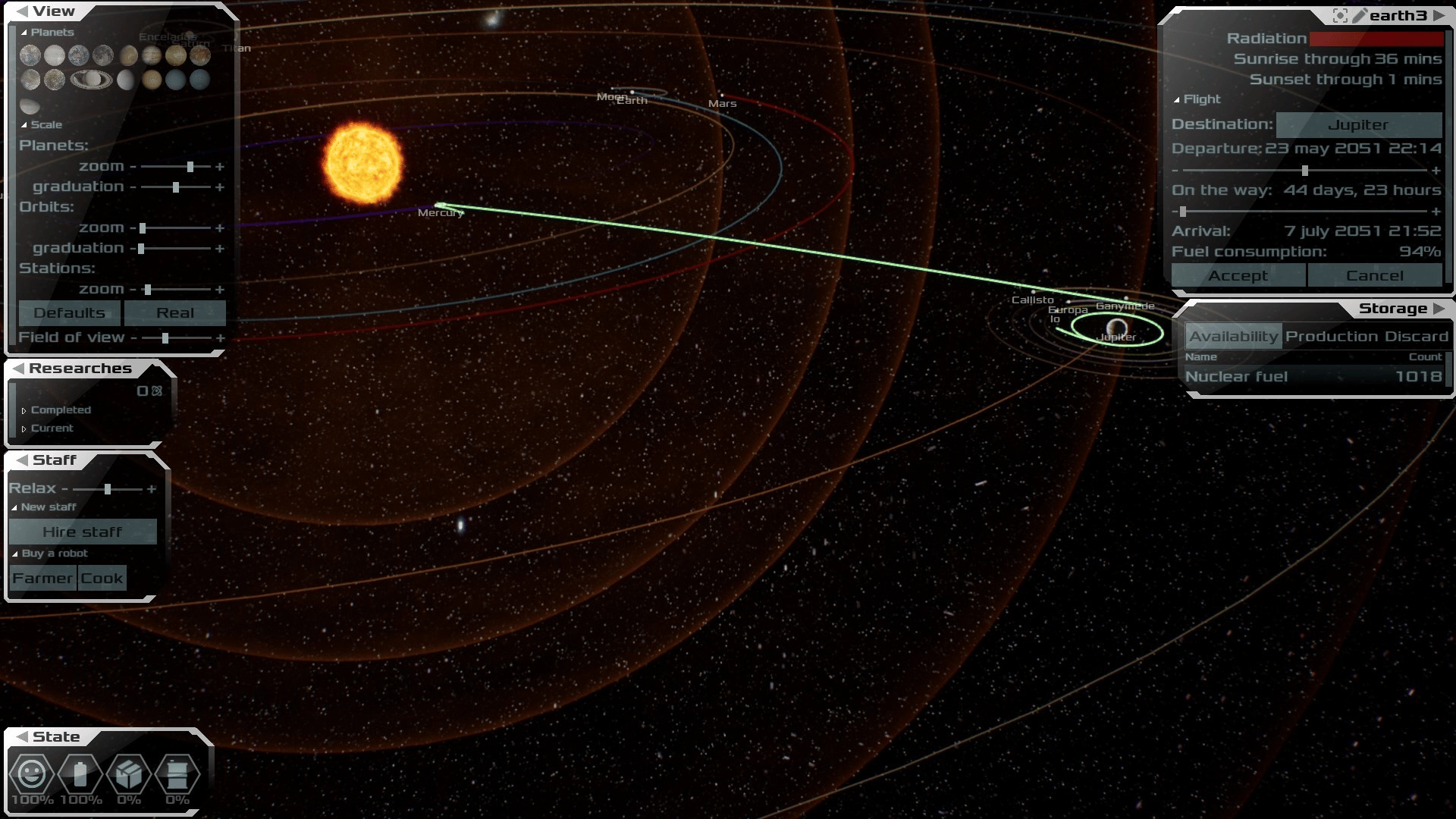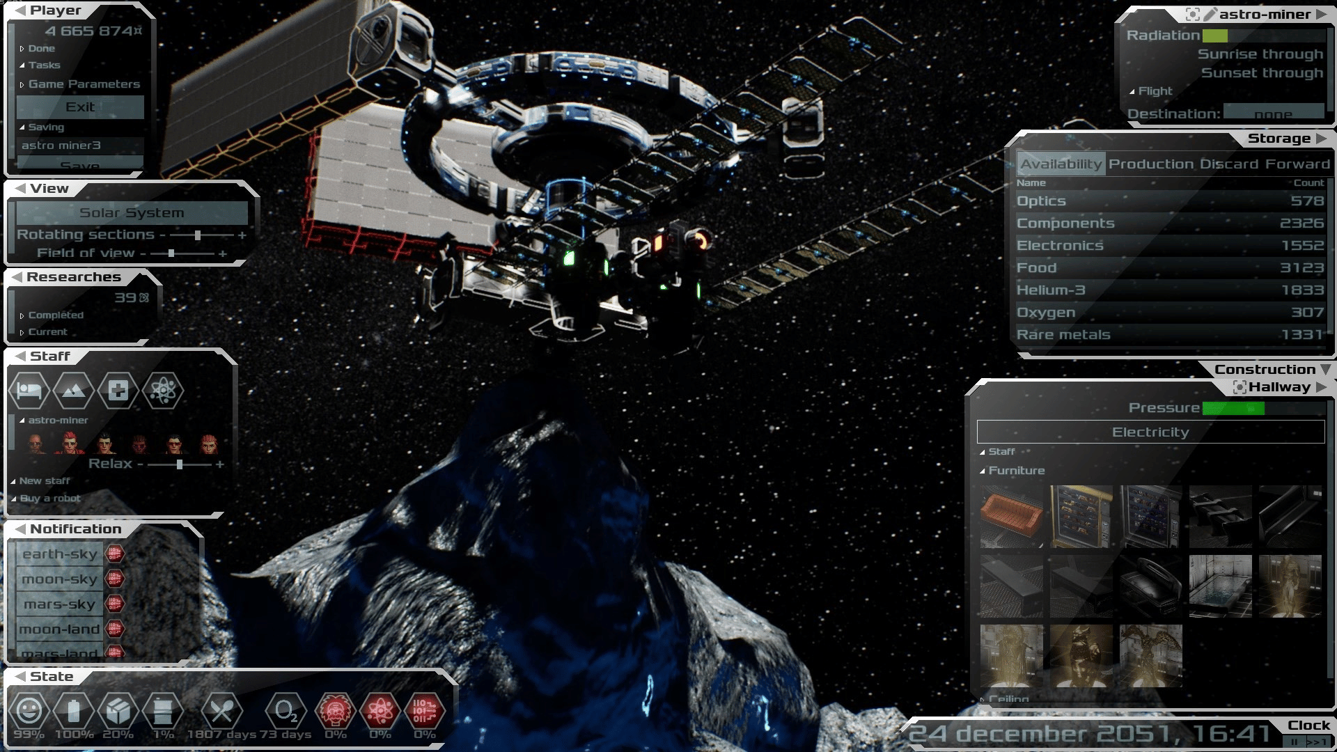 Build and manage colonies on the surfaces of planets and satellites, as well as space stations. With realistic physics of orbital flights.