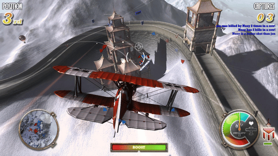 DogFighter is a fast paced, arcade aerial combat game with arena style gameplay values. Players can compete against up to 15 opponents in 4 multiplayer modes, or go solo in 7 single player game modes, using beefed up biplanes sporting over 20 different offensive and defensive weapons... With environments built to both slay and save you, the environments in DogFighter offer the player a more interactive experience than is usual for the genre. Players can enjoy piloting their craft down mining tunnels, through pyramids and active volcanoes, in environments designed to deliver a more varied, more interactive gaming experience. Fly low, fly fast!